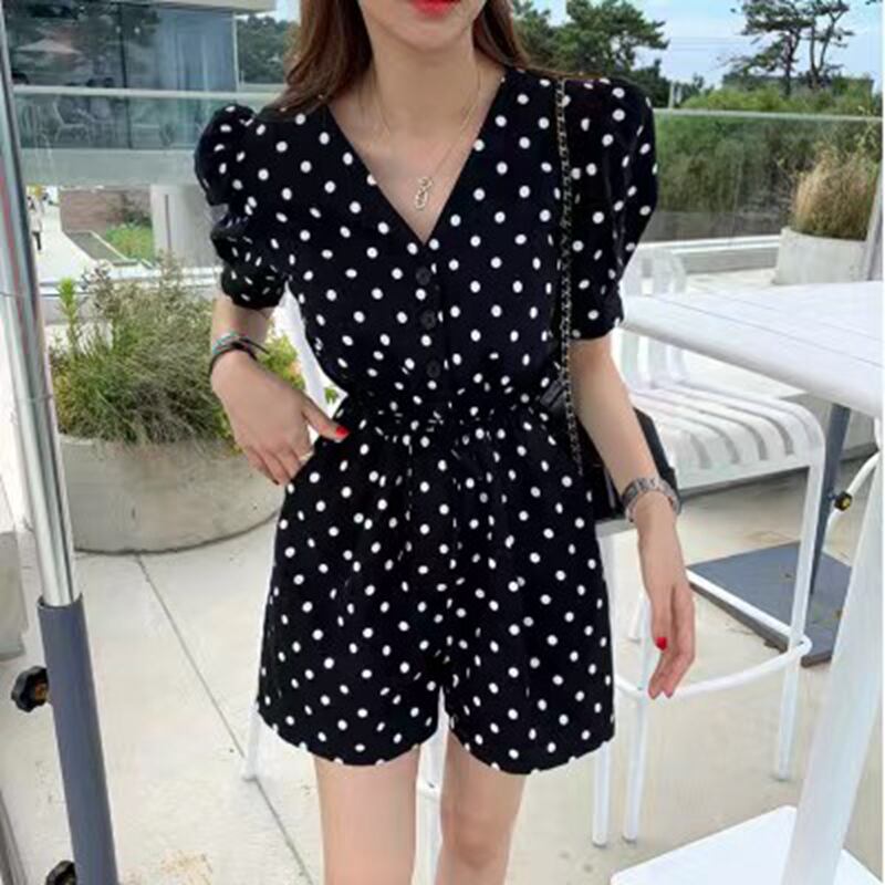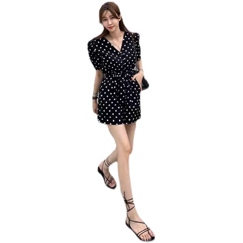 パンツ ハイウェストウェスト薄手Vネックジャンプスーツ オールインワン ショーツ ブルマー 5/17 mi4651876053457
