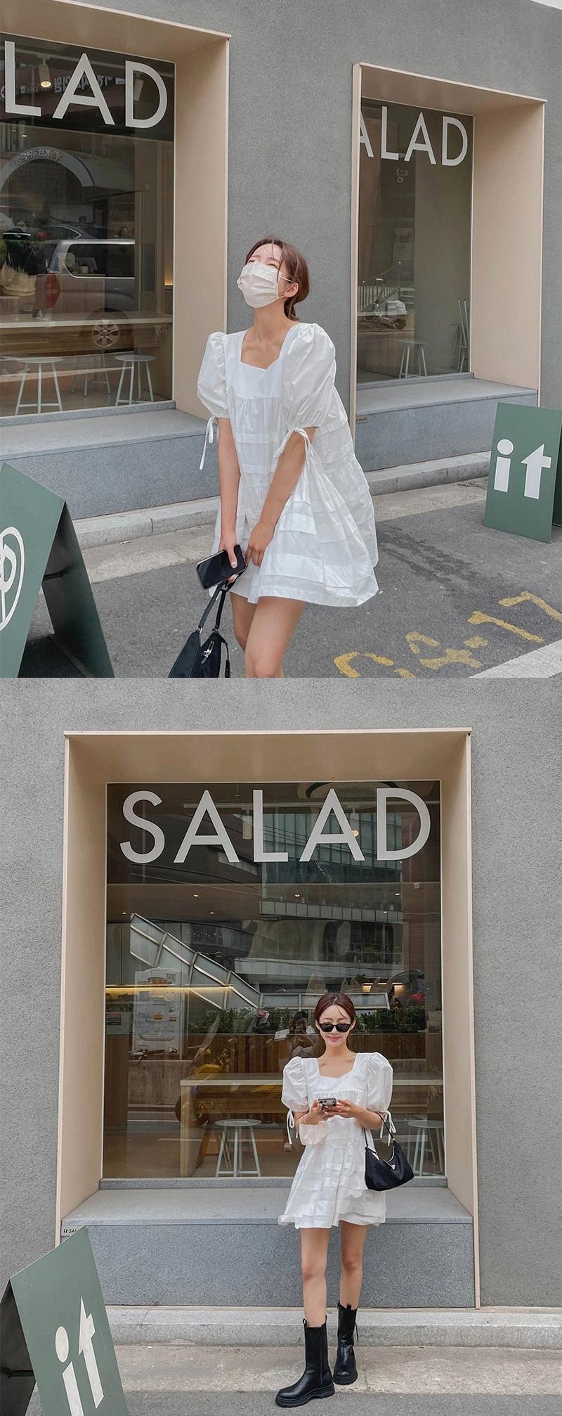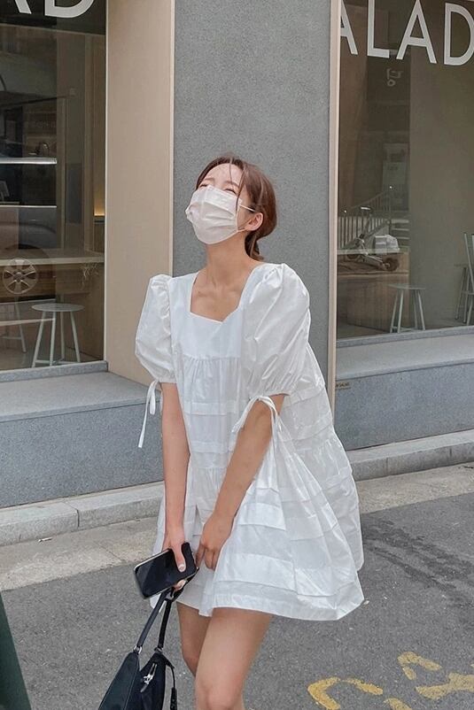 スプリングサマーカラーホワイトドレス Aラインスカート 大人ガーリー スウィート キュート カジュアル 春物 夏物 スクウェア 5/17 mi4652714352730