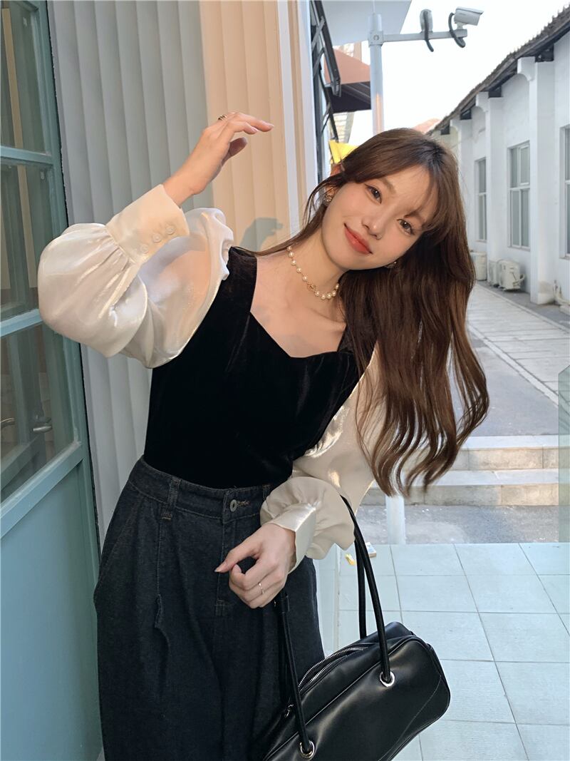 スプリングカラーベルベットスリーブシャツ 春物 スクウェア ステッチ 5/17 mi4630637888990