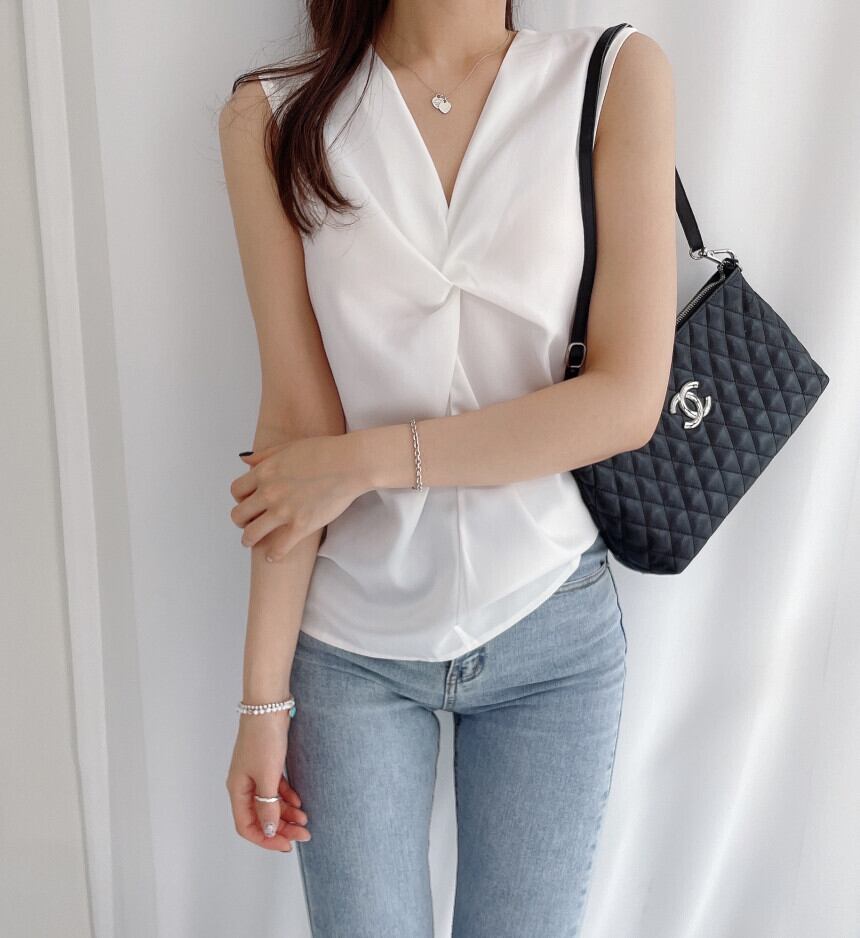 スタイルサマーVネックノースリーブトップス レディース 夏物 5/17 mi4646052403658