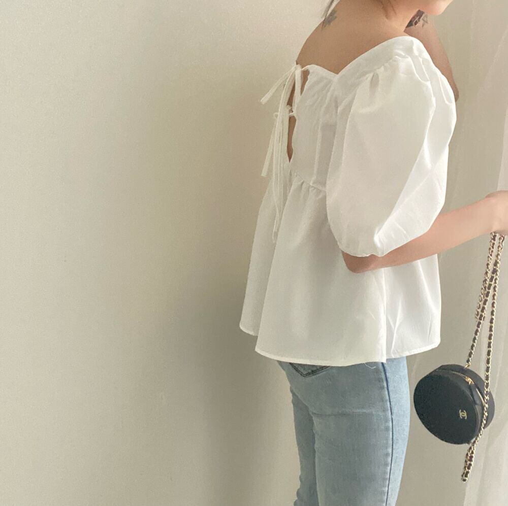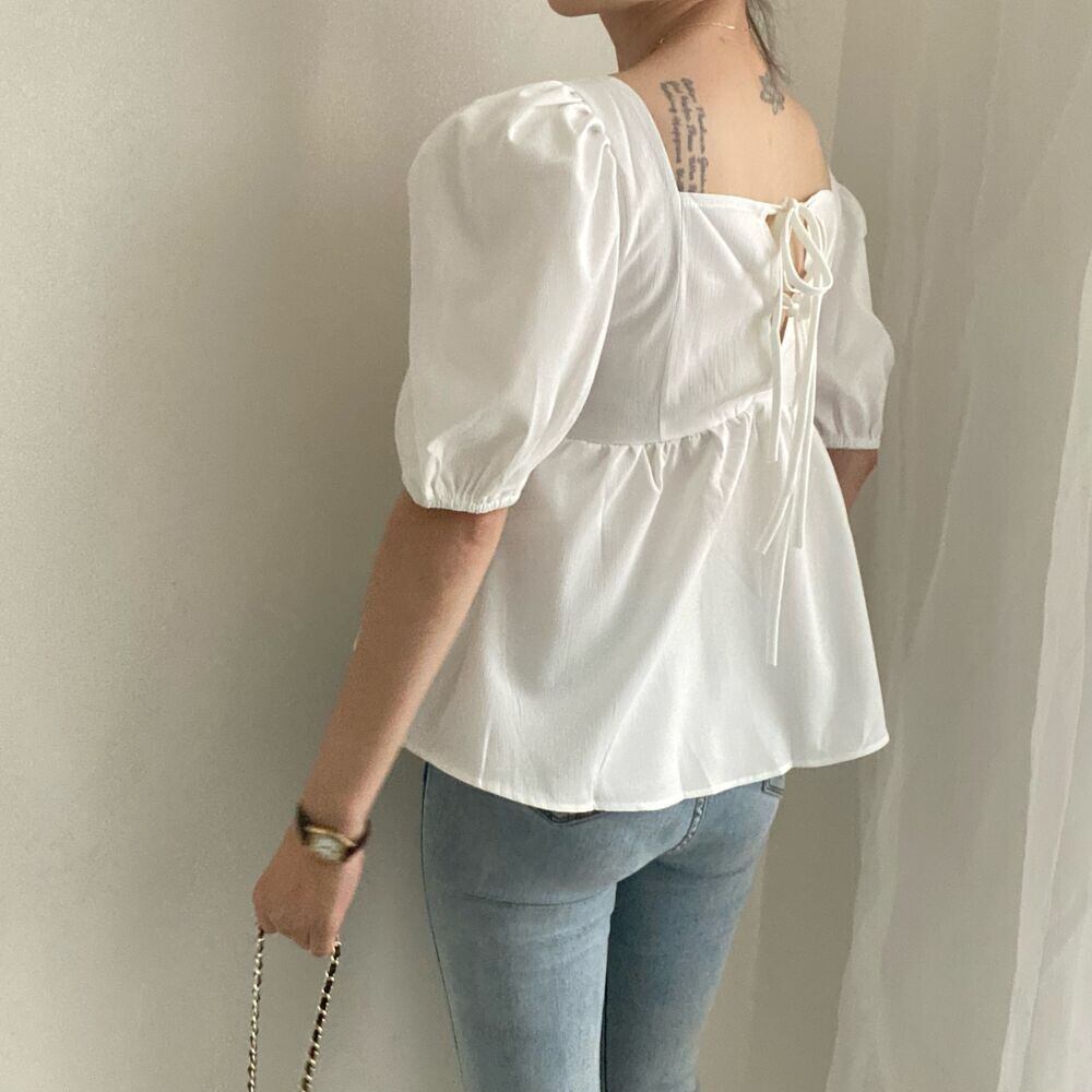 スタイルカラースタンダードバッククロスストラップ ショートシャツ トップス レトロ スクウェア 5/17 mi468087130721
