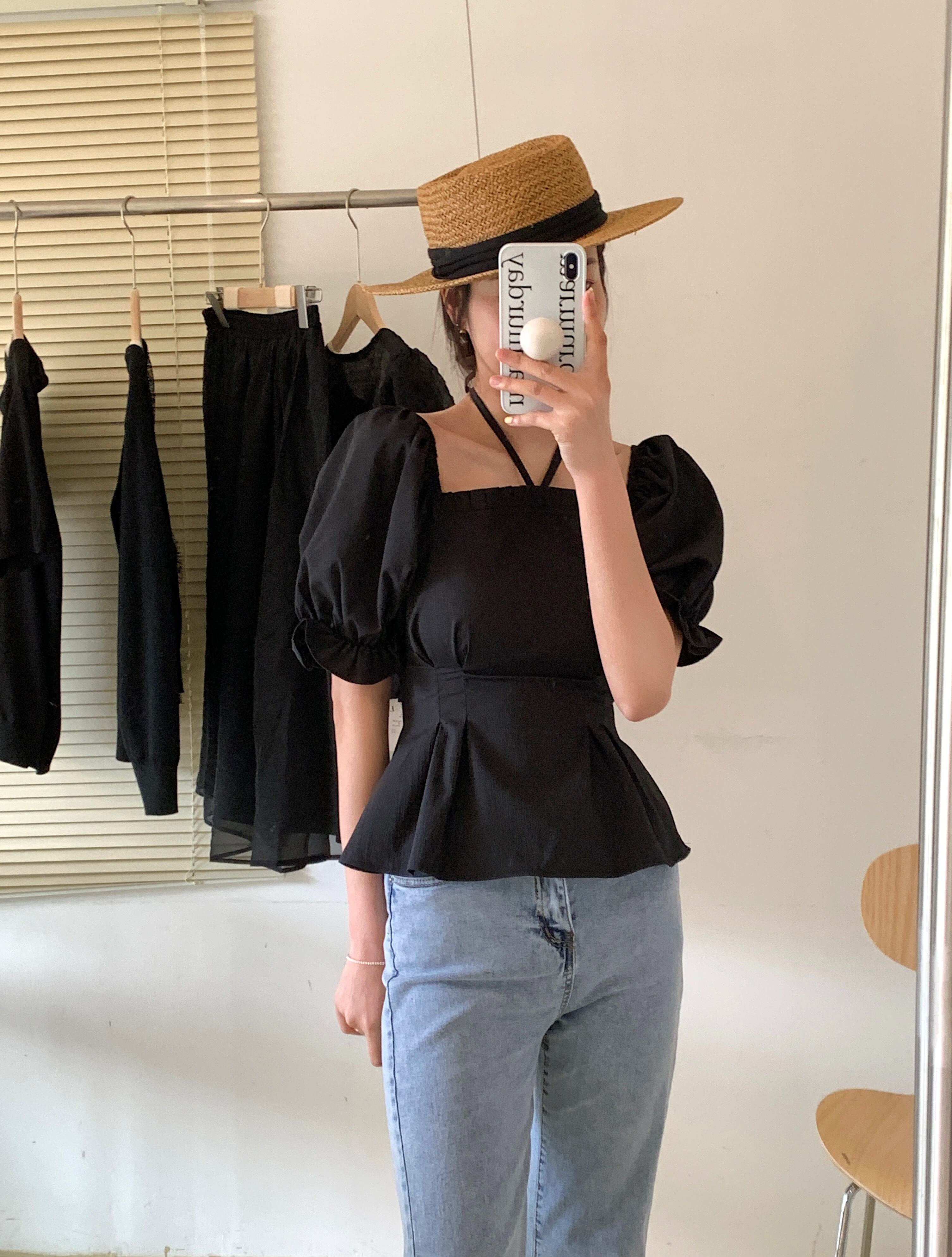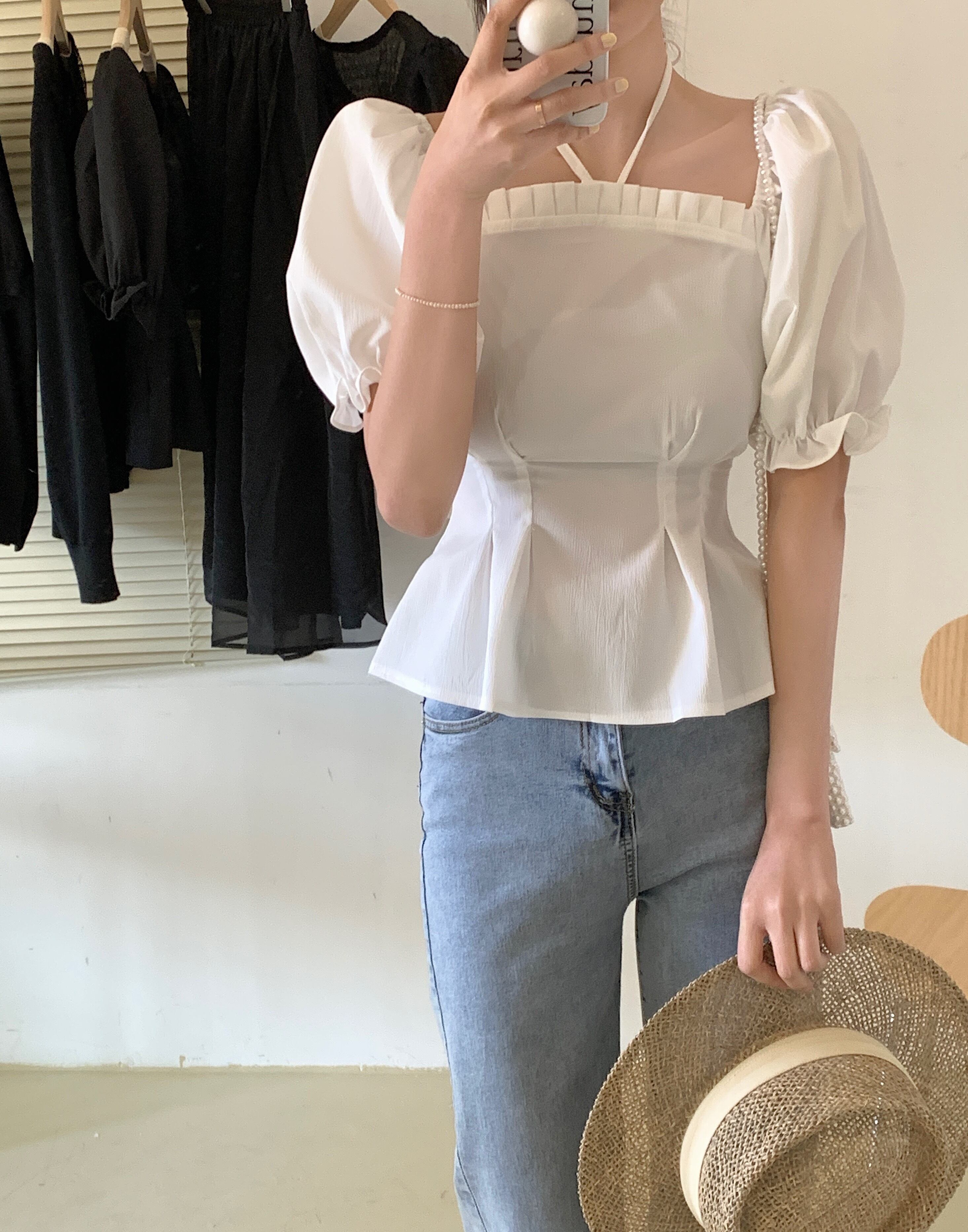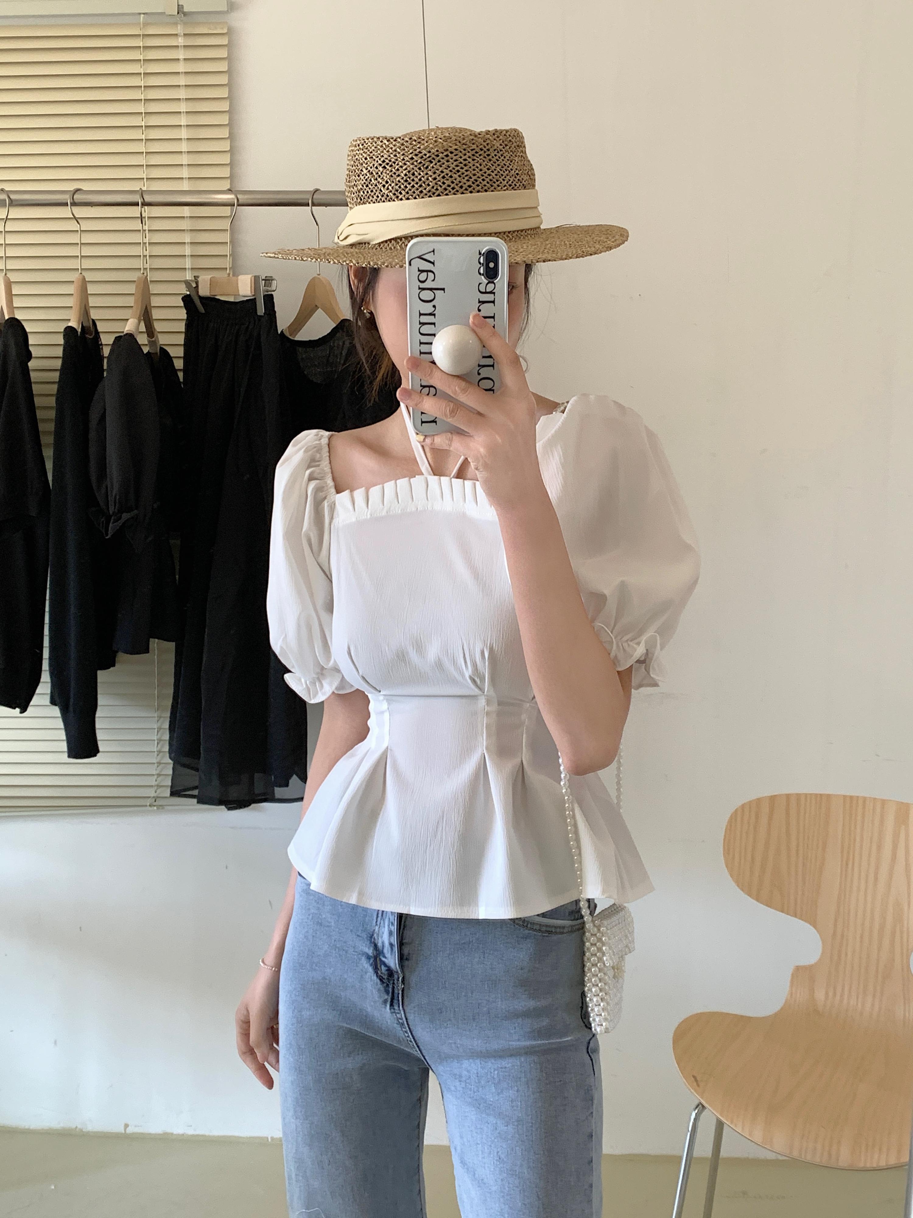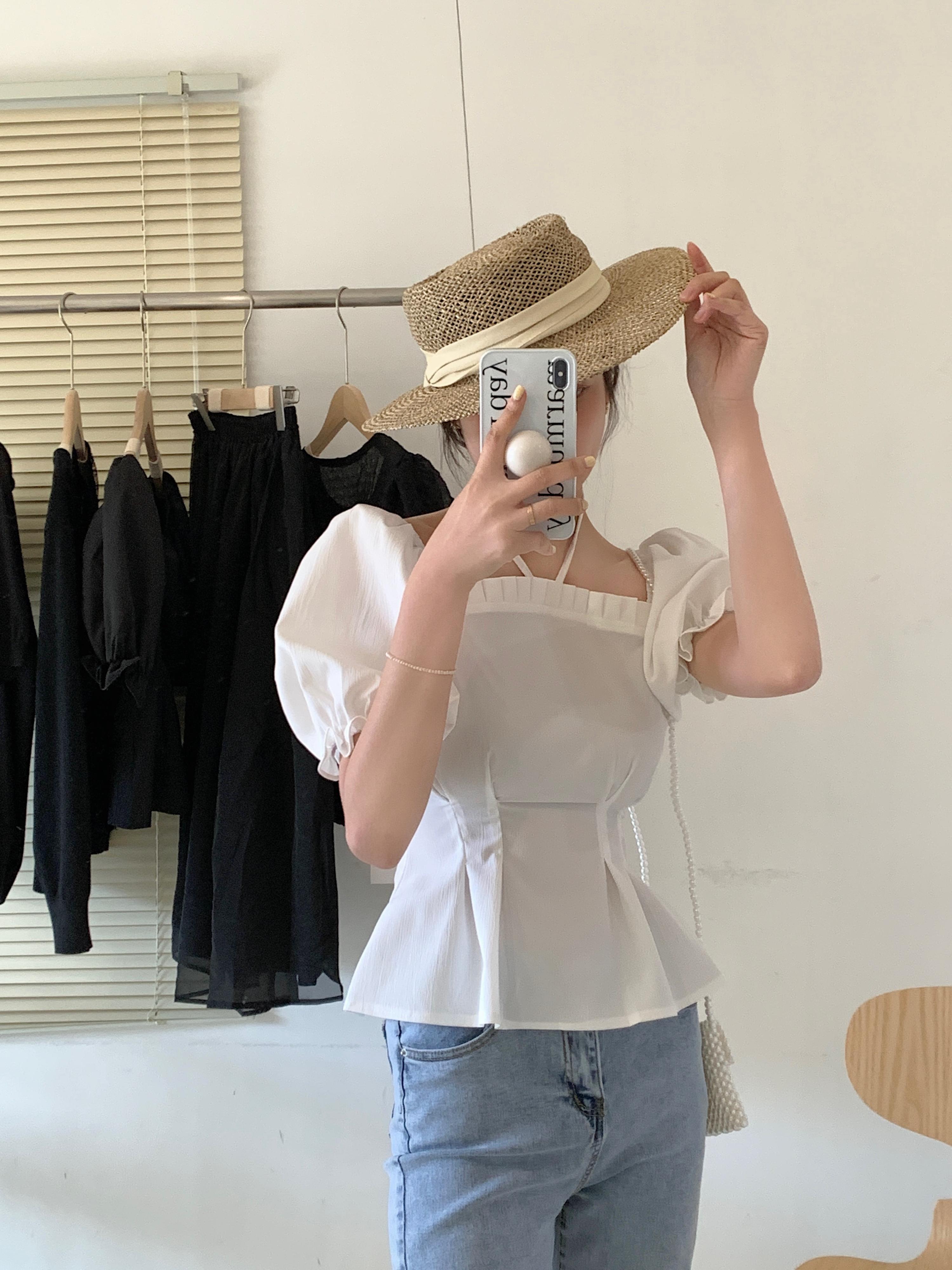 ホルターショートスリーブシャツ サマーホワイトトップス 大人ガーリー スウィート キュート カジュアル 夏物 5/17 mi4659379751645