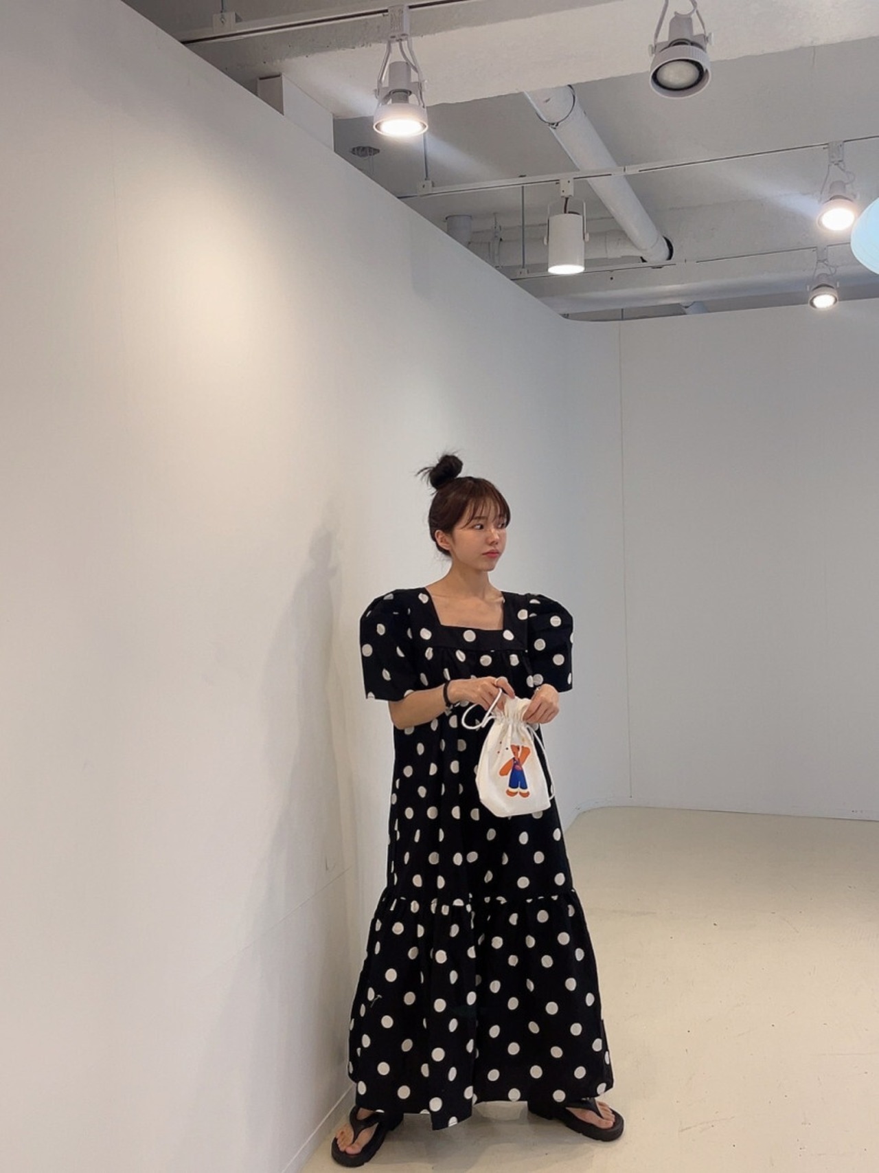 スタンダード水玉ハイウェストウェストプリーツドレス レトロ スクウェア 5/17 mi4689071700613