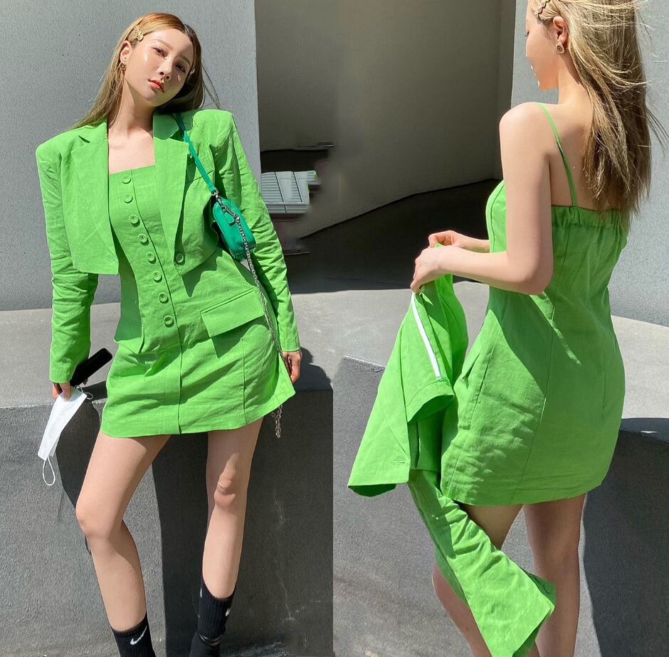 ドレス サマーグリーンAラインスカート ショート 夏物 5/17 mi467086218563