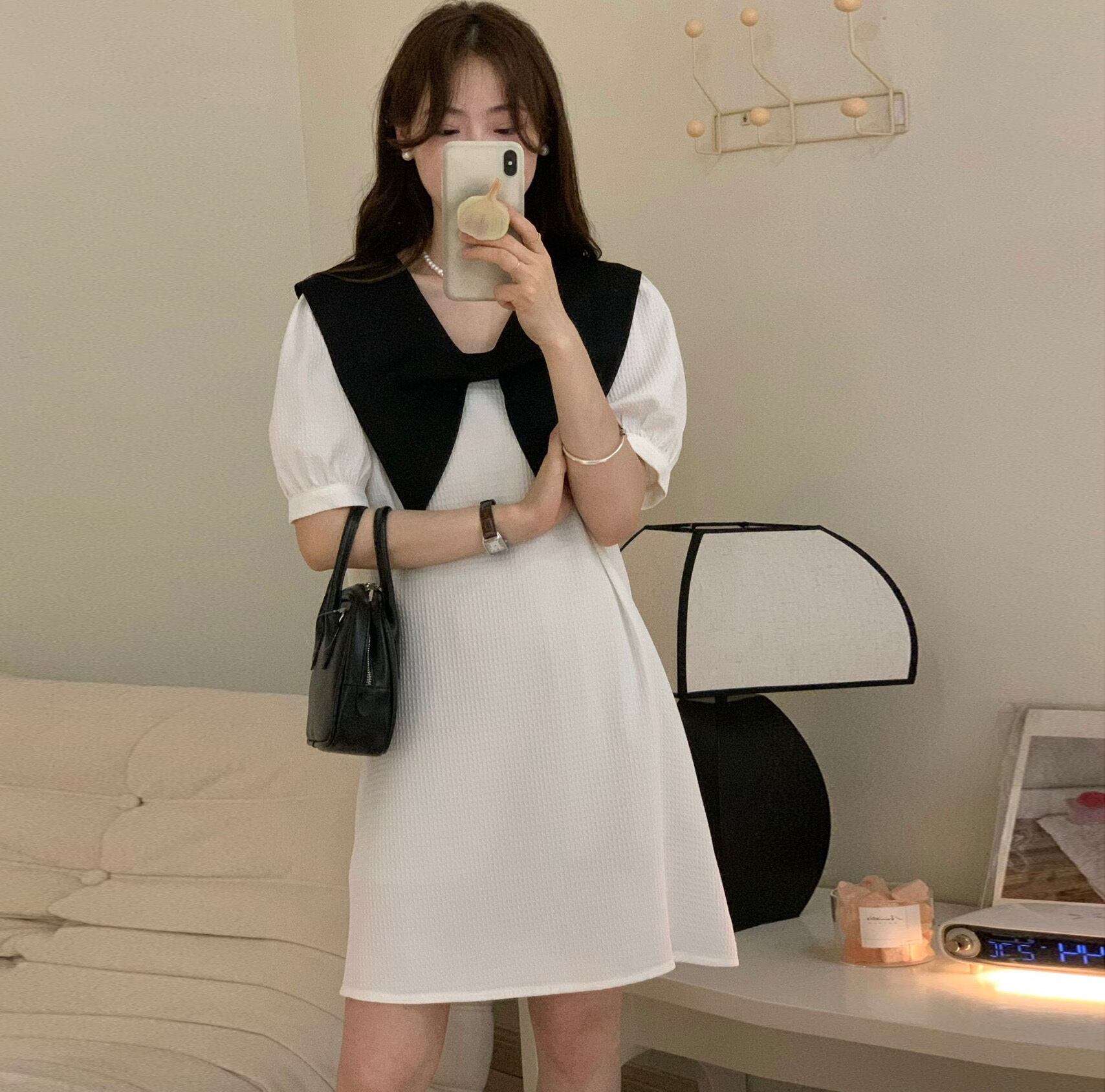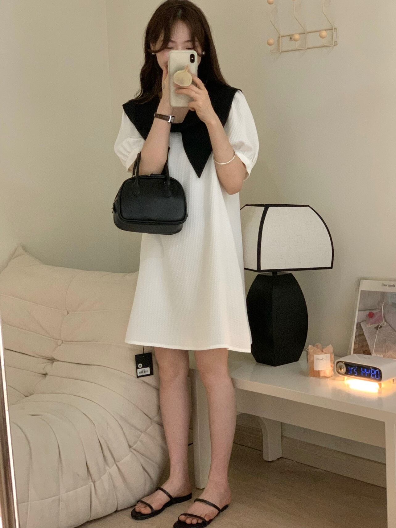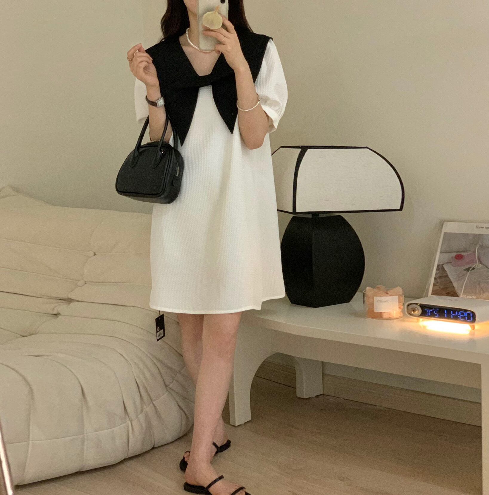 スタイルサマーリボンルーズカラースリーブドレス 夏物 ステッチ 5/17 mi4691119277094