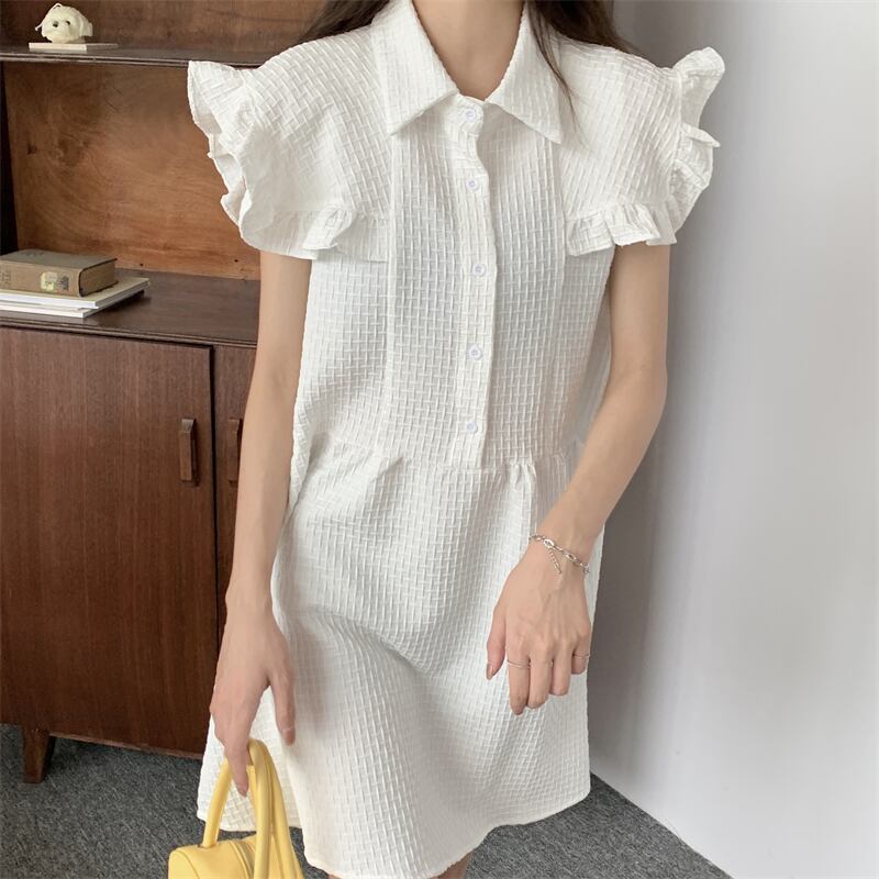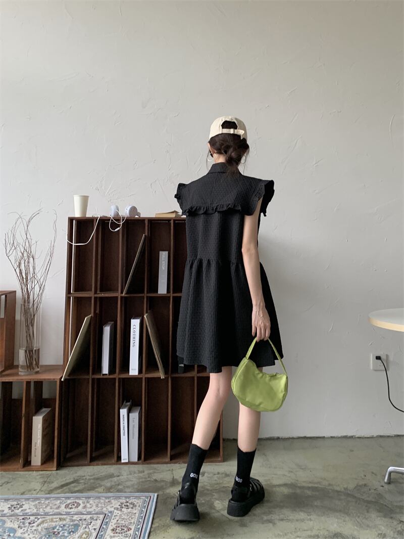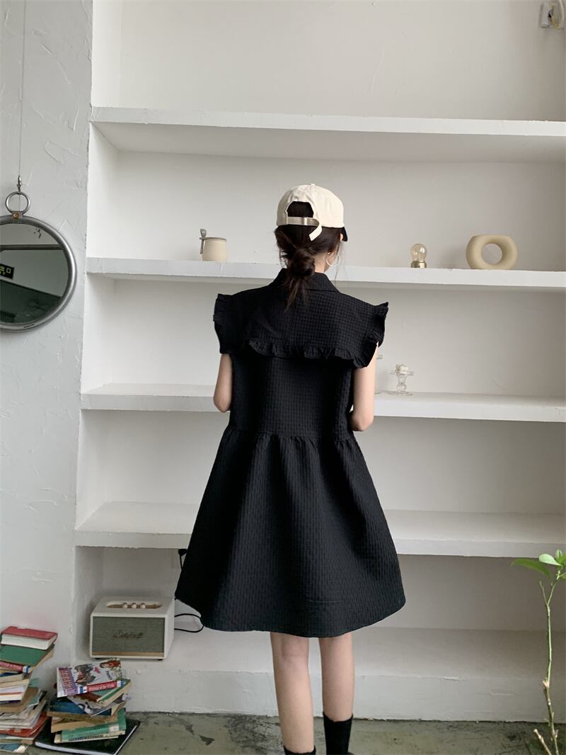 ラッフルノースリーブルーズ薄手ソリッド カラーダークドレス ソリッドカラー 5/17 mi467015858779