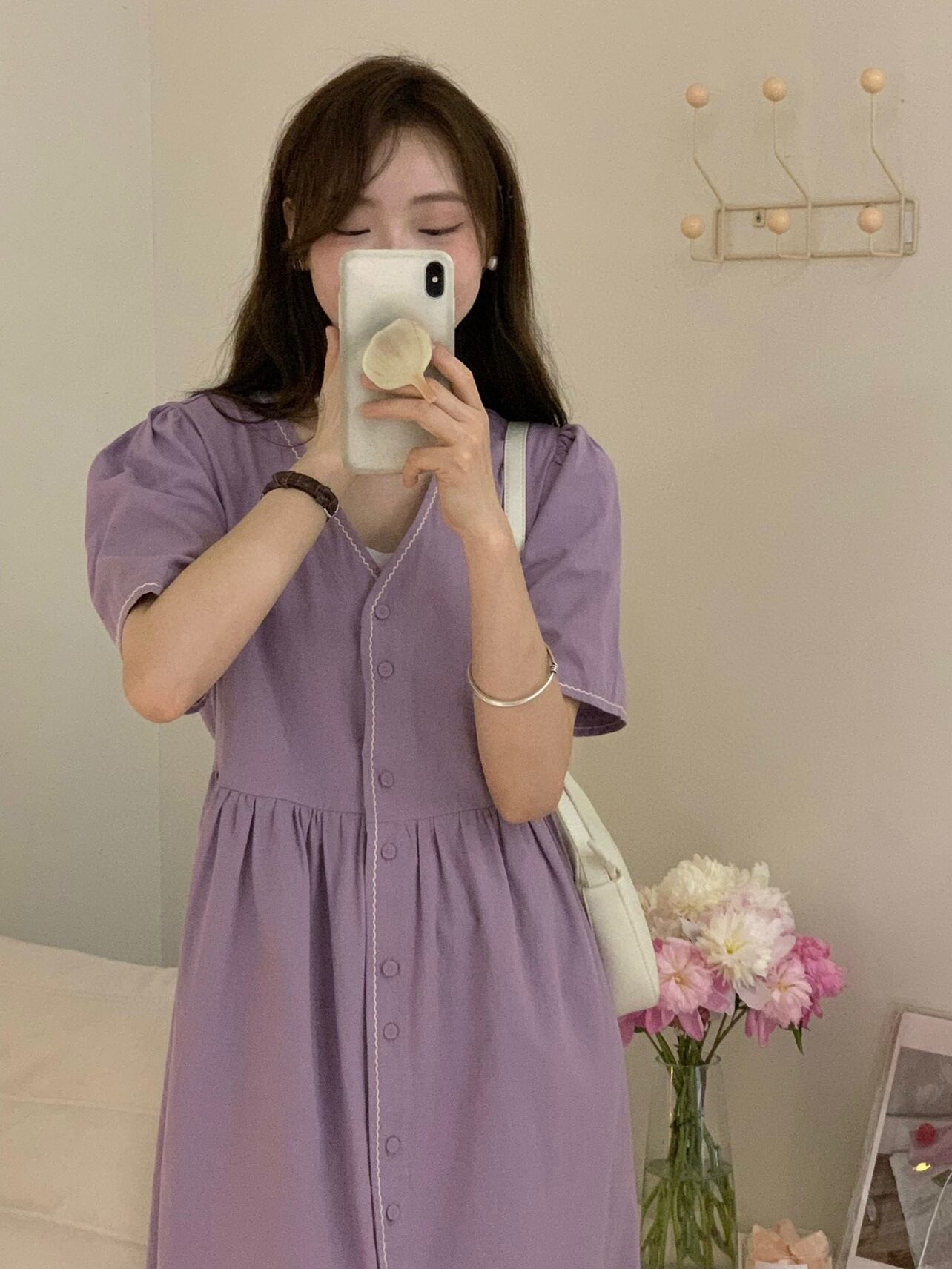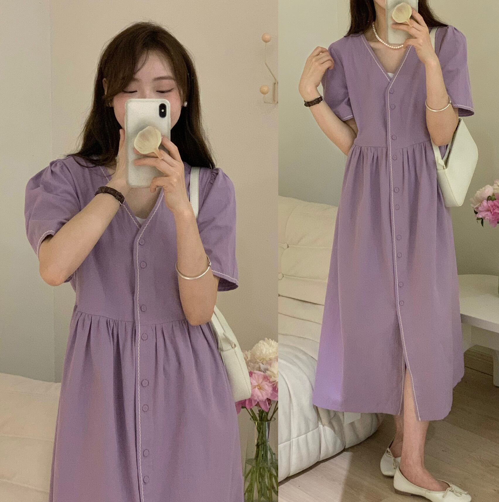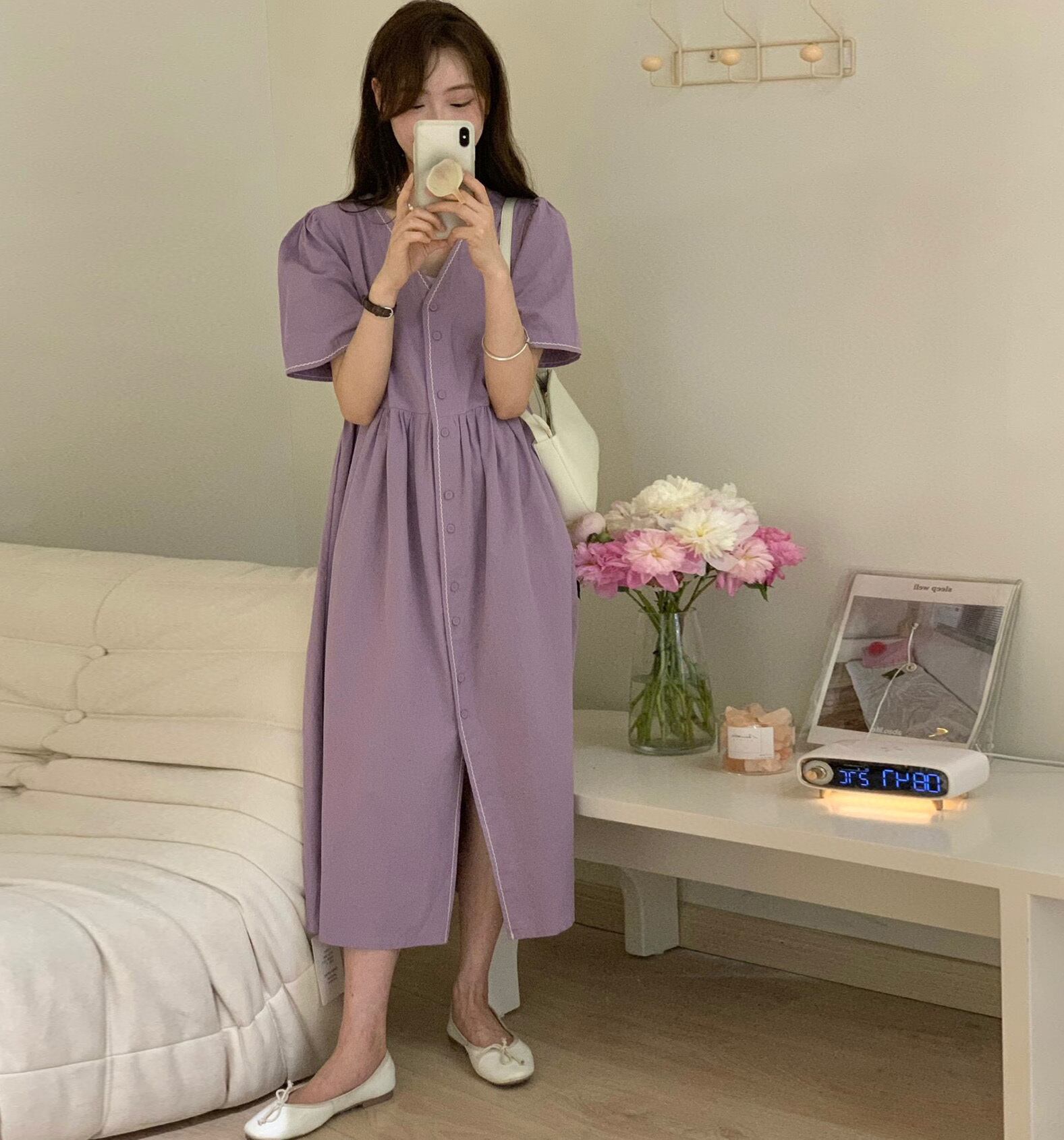 スタイルVネックドレス ラインロングスカート 大人ガーリー スウィート キュート カジュアル パープル 5/17 mi463273943194