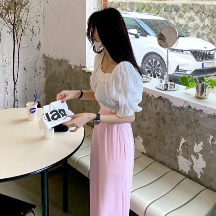 スリーブソリッド カラーシャツ ショートトップス ソリッドカラー スクウェア 5/17 mi4646949974585