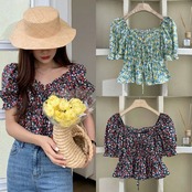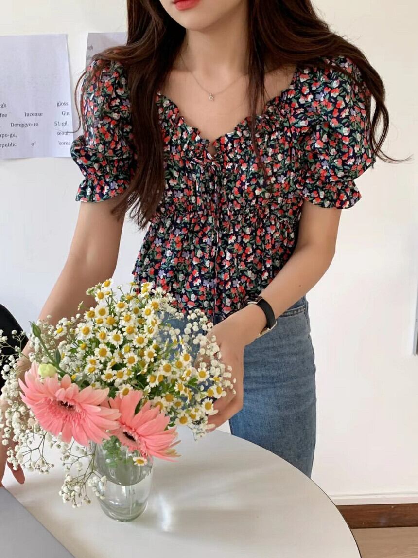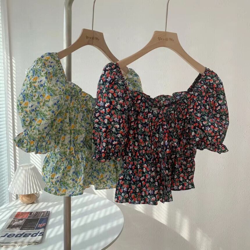 スタイルスタンダードカラーフローラルショートシャツ レトロ 花柄 スクウェア ステッチ 5/17 mi4621973123690