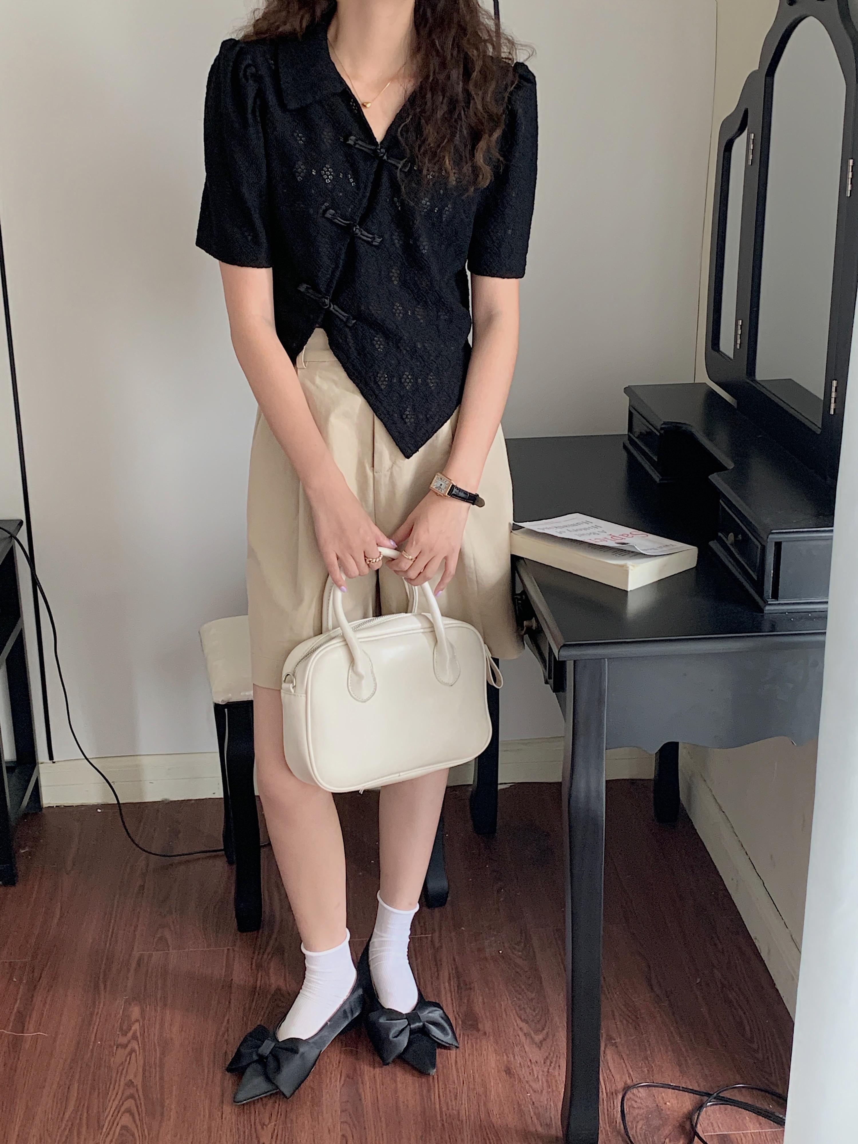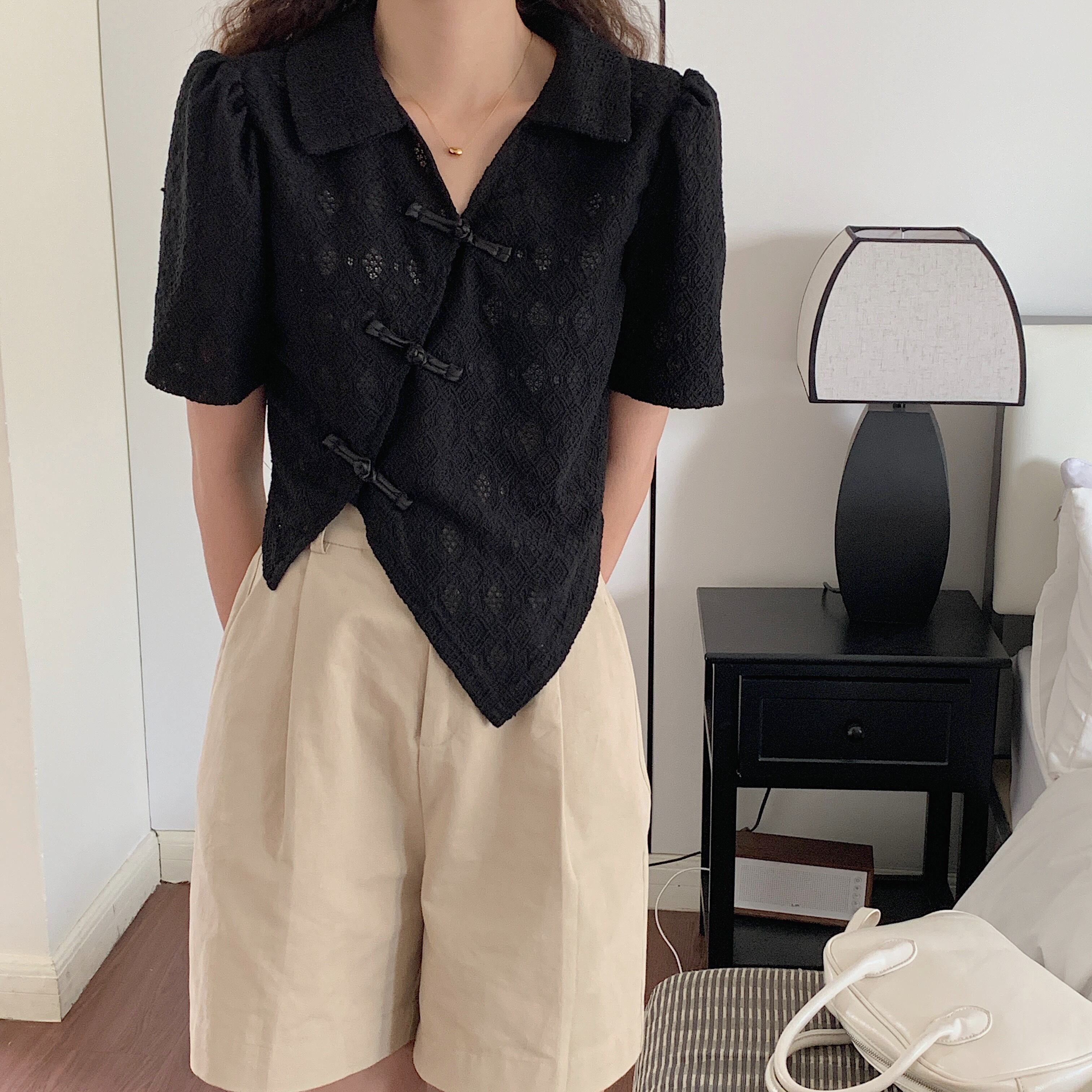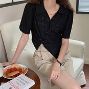 スタイルスタンダードボタンショートシャツ カラー薄手トップス レトロ 5/17 mi4675485413207