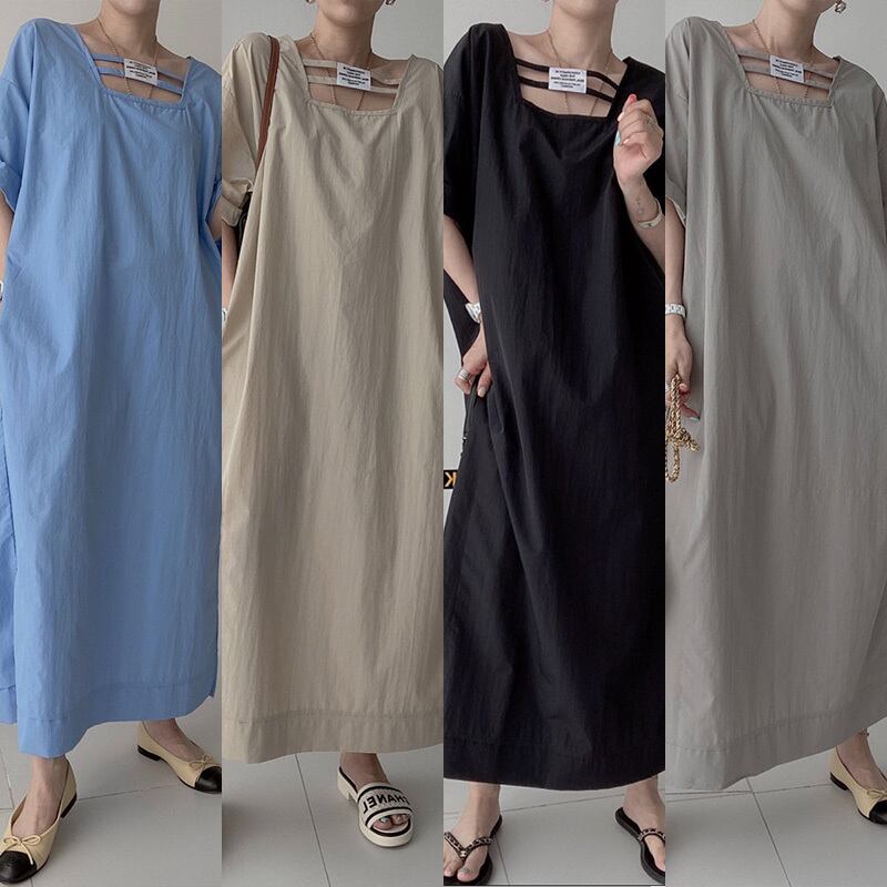 カラーバックプリント柄ドレス ロングスカート レディース スクウェア 5/17 mi4634198940198