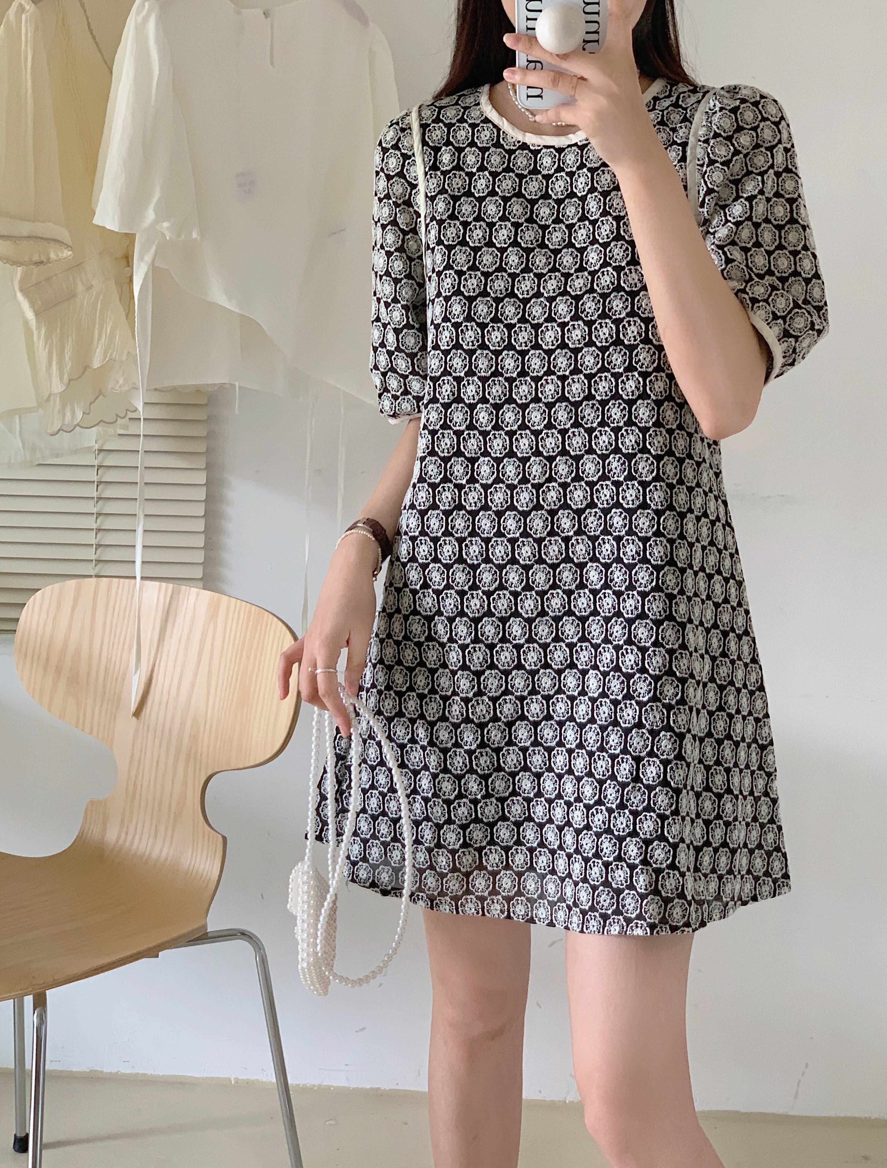 刺繍スリーブドレス スタンダードルーズAラインスカート レトロ 5/17 mi4661049111047