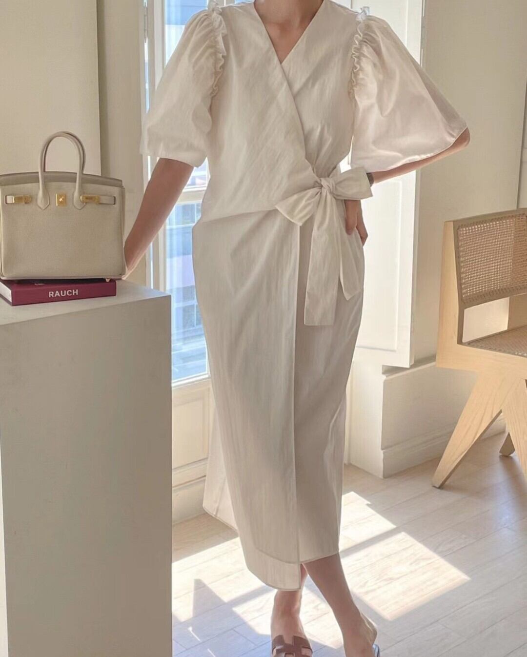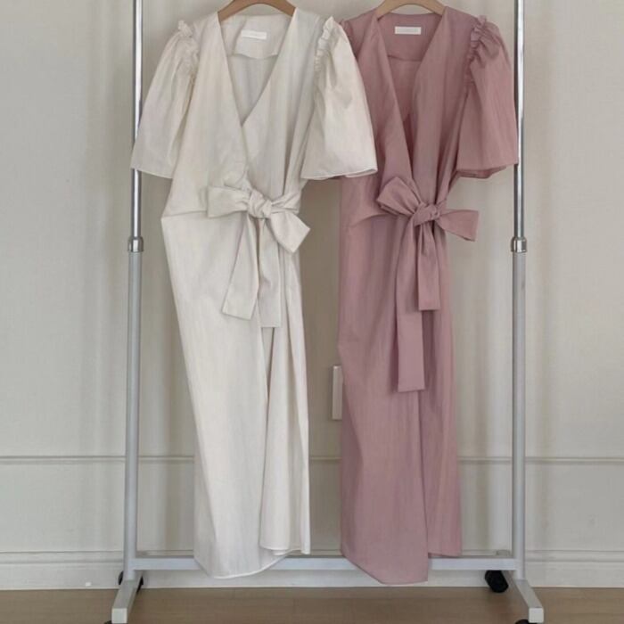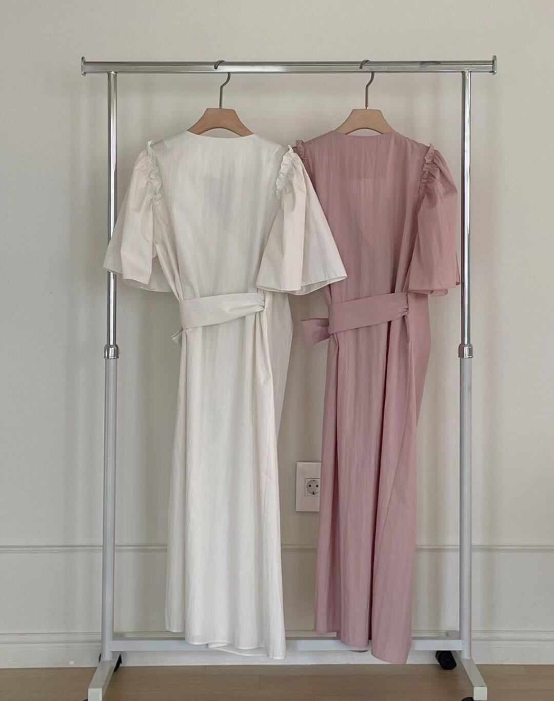 スタイルVネッククロスリボンルーズスリーブドレス ロングスカート 5/17 mi4612114820278