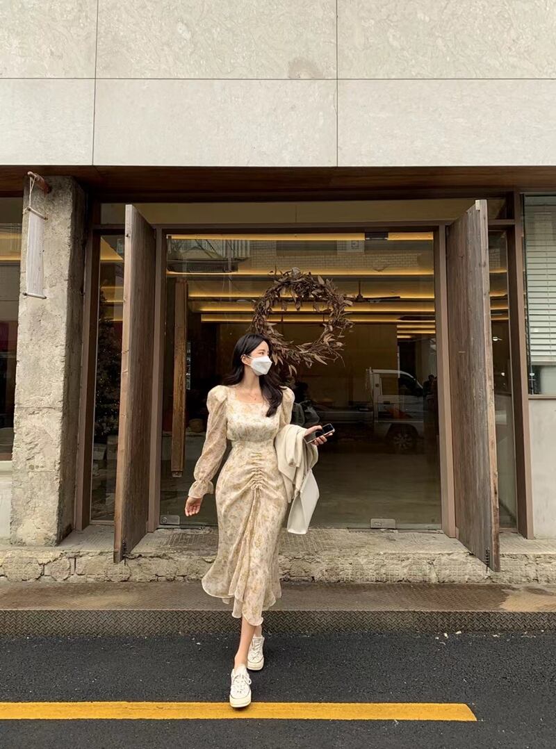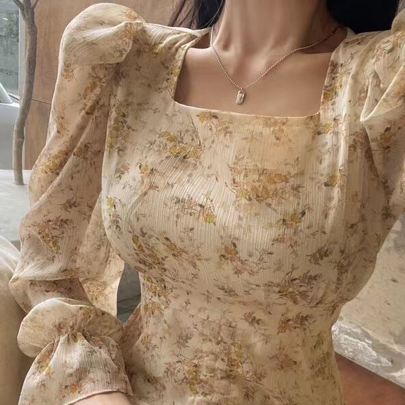 スプリング薄手カラーフローラルギャザードレス レディース 春物 花柄 スクウェア 5/17 mi4685959282179
