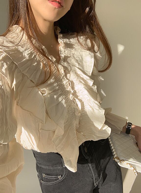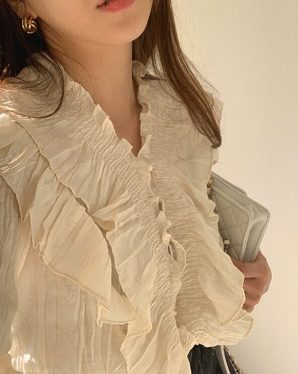 スタイルスプリングトップス Vネックプリーツシャツ ロング 大人ガーリー スウィート キュート カジュアル 春物 5/17 mi465197309459