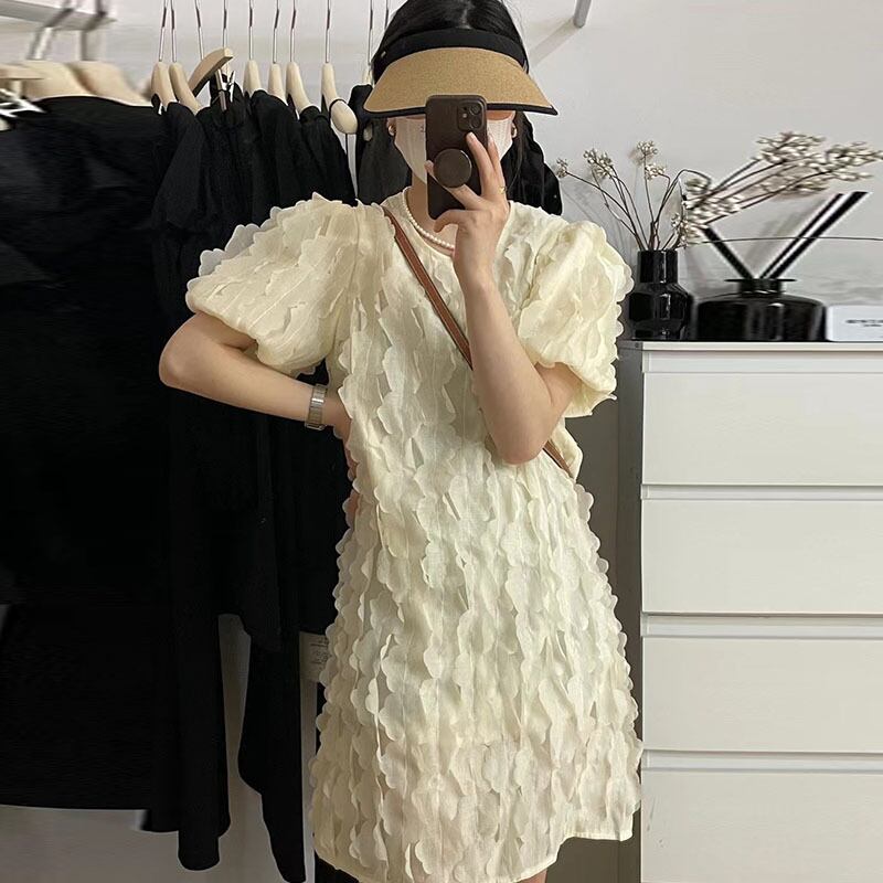 サマーラウンドネックFlowerデザイン ルーズドレス 大人ガーリー スウィート キュート カジュアル 夏物 Oネック フラワーデザイン 6/8 mi4678170297197