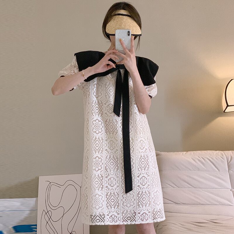 サマースタンダードレースバックジャカードスリーブドレス レトロ 夏物 6/8 mi4675256539294