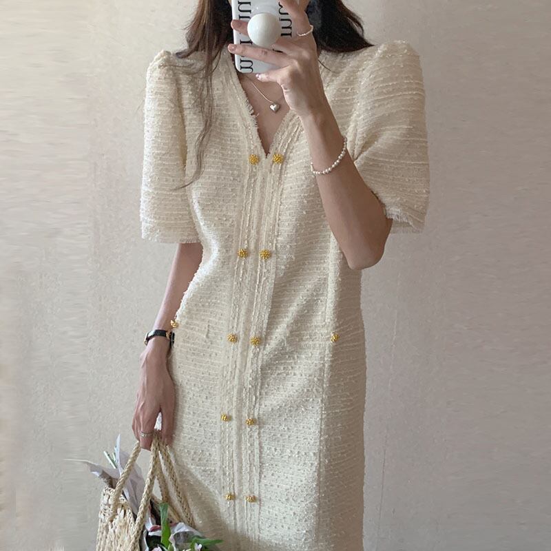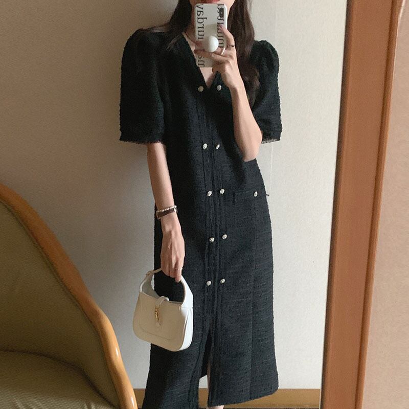 サマーVネックダブルブレストルーズスリーブスリットドレス 夏物 6/8 mi4612524467879