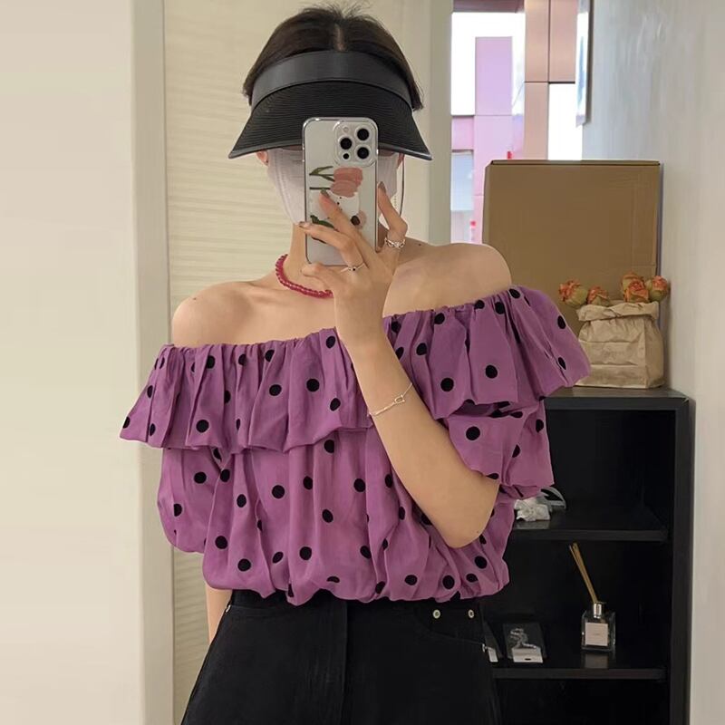 サマーカラールーズスリーブ水玉シャツ トップス レディース 夏物 ステッチ 6/8 mi4699000024434