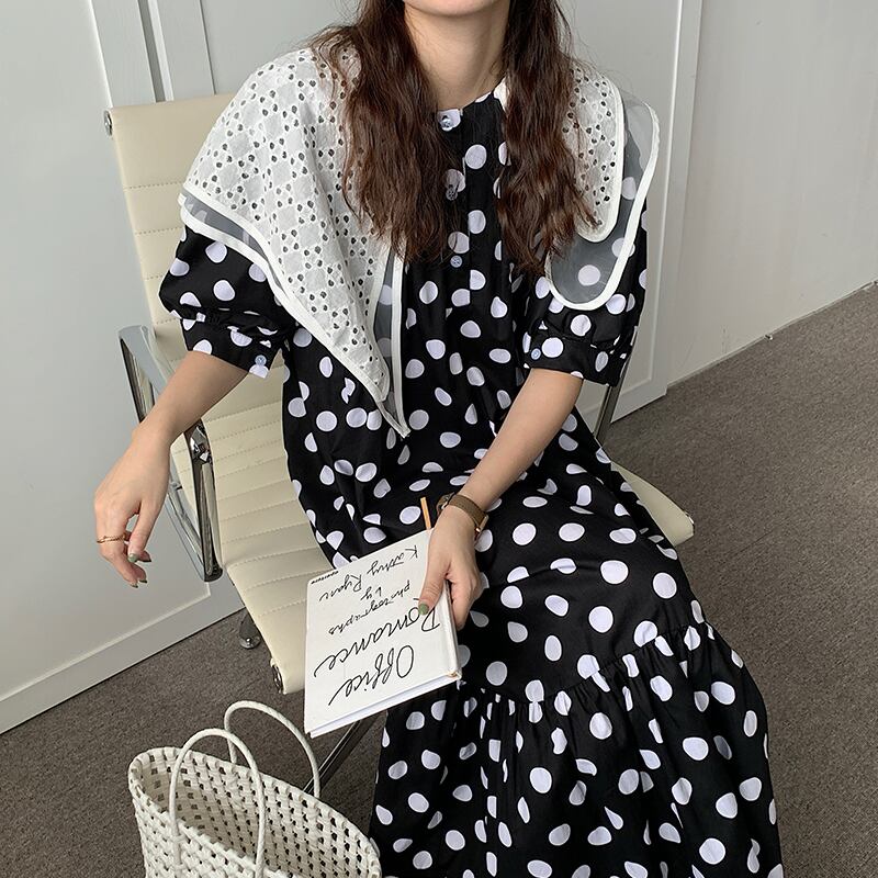 サマー水玉ルーズスリーブドレス ロングスカート エレガント 夏物 6/8 mi4658675269071