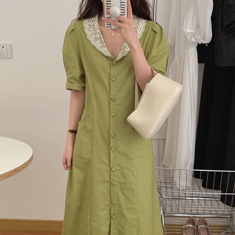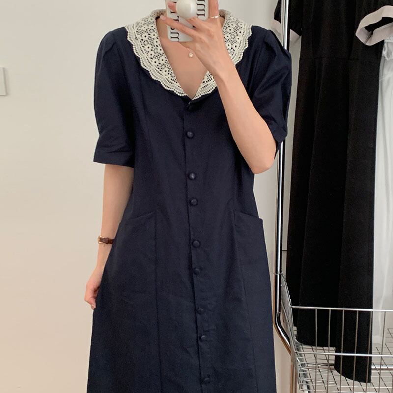 サマーレースFlowerデザイン ポケットルーズスリーブドレス 夏物 フラワーデザイン 6/8 mi4663772841971