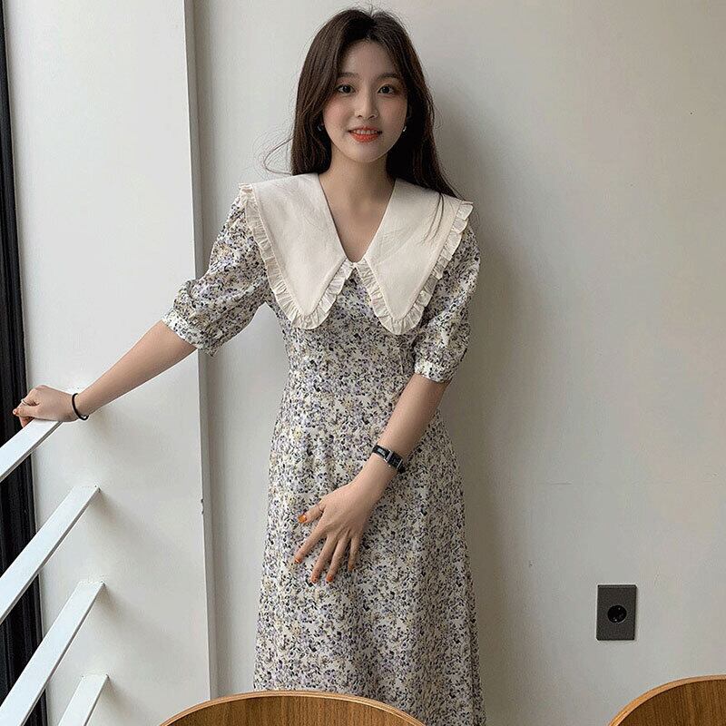 サマーカラーFlowerデザイン スリーブドレス 夏物 フラワーデザイン ステッチ 6/8 mi4622766552922