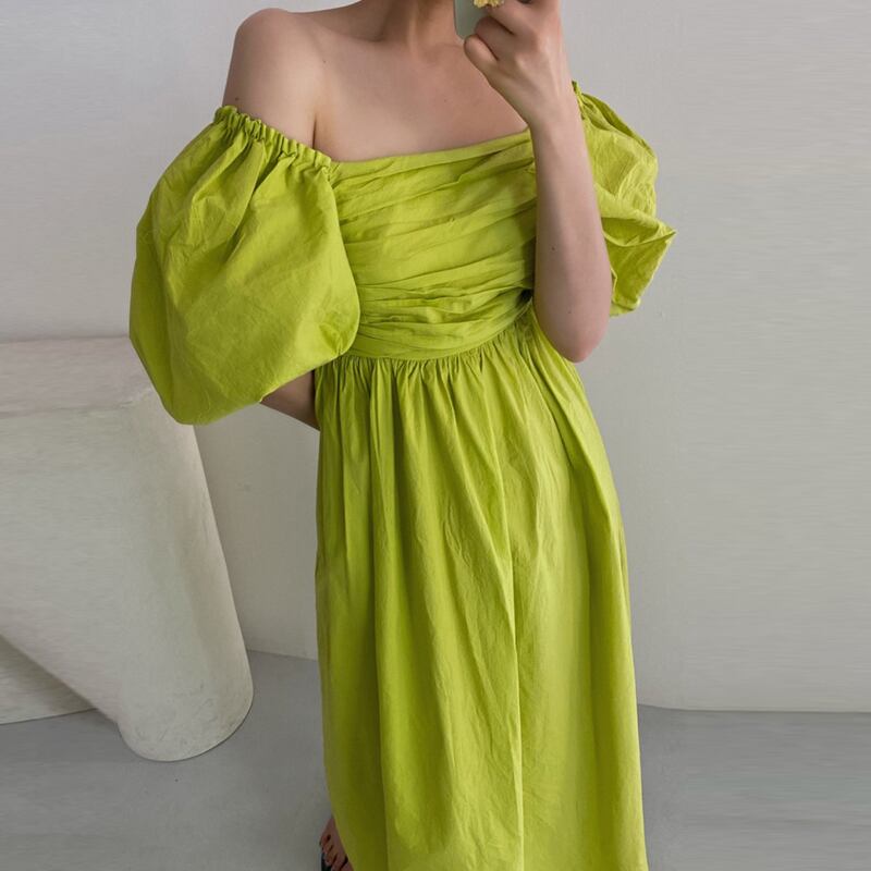 サマースタンダードカラースリーブドレス レトロ 夏物 スクウェア 6/8 mi4695764479568