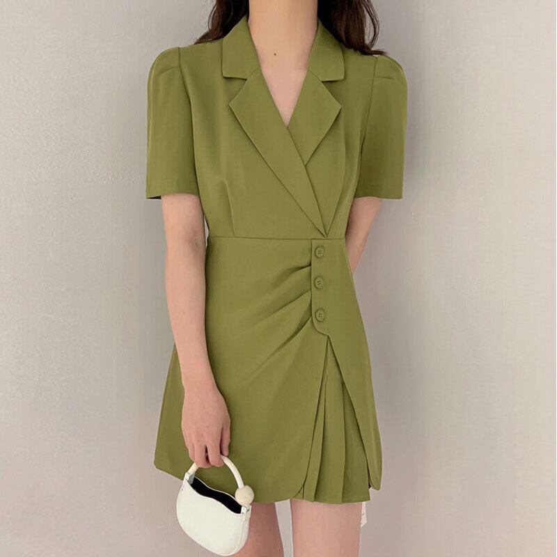 サマープリーツスリーブドレス レディース レッド 夏物 6/8 mi4644943828417