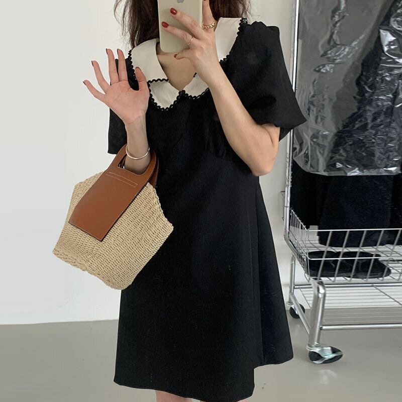 サマーイエローカラーウェストスリムスリーブAラインドレス ショートスカート レディース 夏物 6/8 mi4685112105834