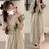 サマーVネックウェスト薄手フローラルドレス エレガント 夏物 花柄 6/8 mi4631364824854