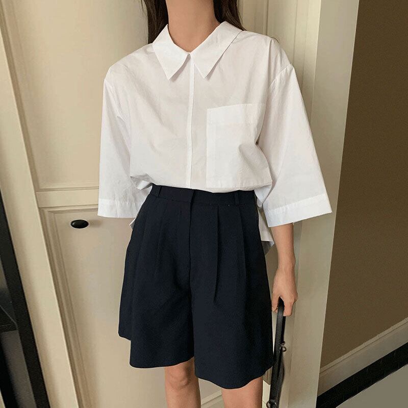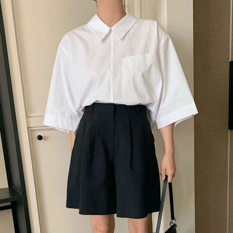 サマーシャツ ハイウェストウェストカジュアルショーツ レディース 夏物 ブルマー 6/8 mi4647882377655