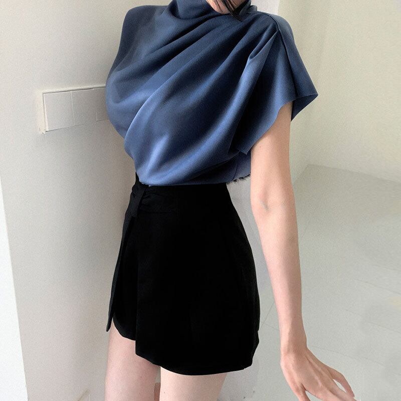 サマースタンダードカラーシャツ ハイウェストウェストスリットショーツ レディース レトロ 夏物 ブルマー 6/8 mi4637872786319