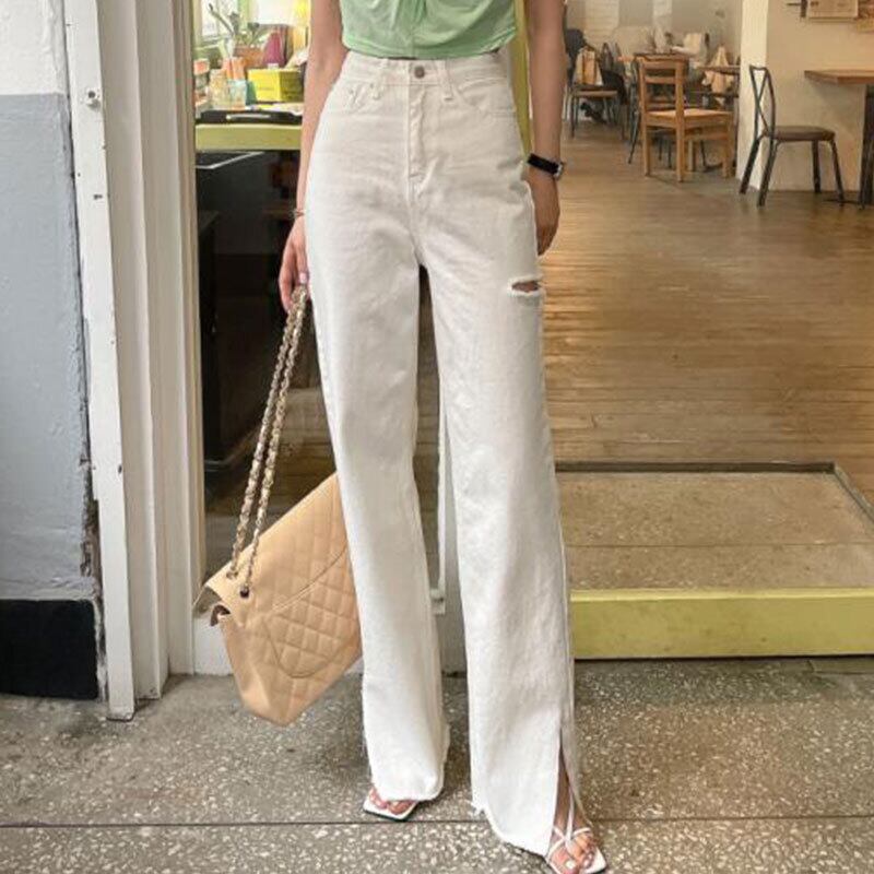 サマーハイウェストウェストボタンワイドレッグジーンズ 夏物 ワイドパンツ 6/8 mi4617779313054