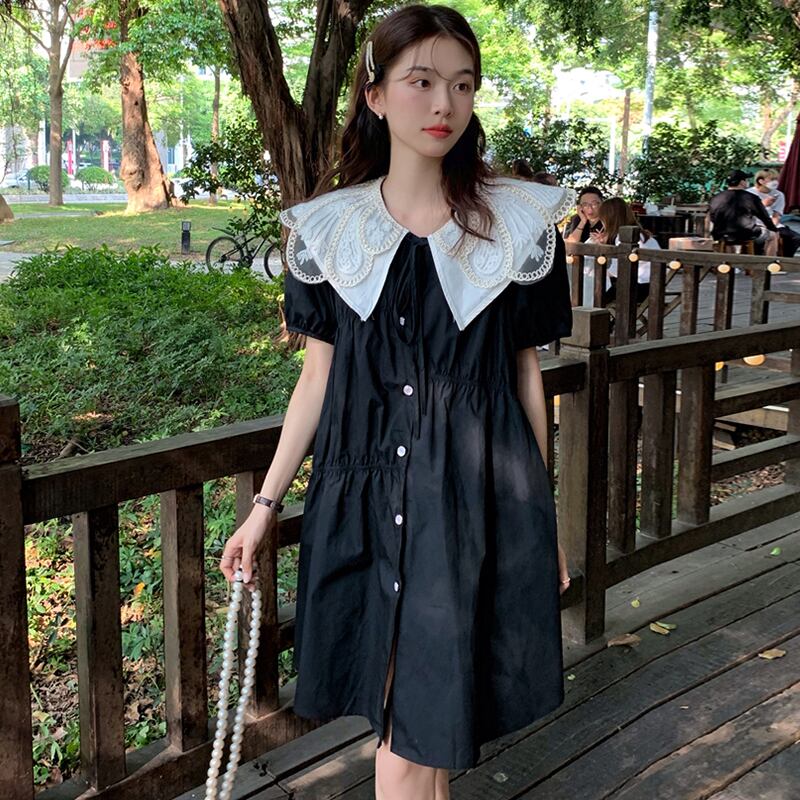 カラールーズスリーブドレス レッド 刺繍 大人ガーリー スウィート キュート カジュアル 6/8 mi4676834074856