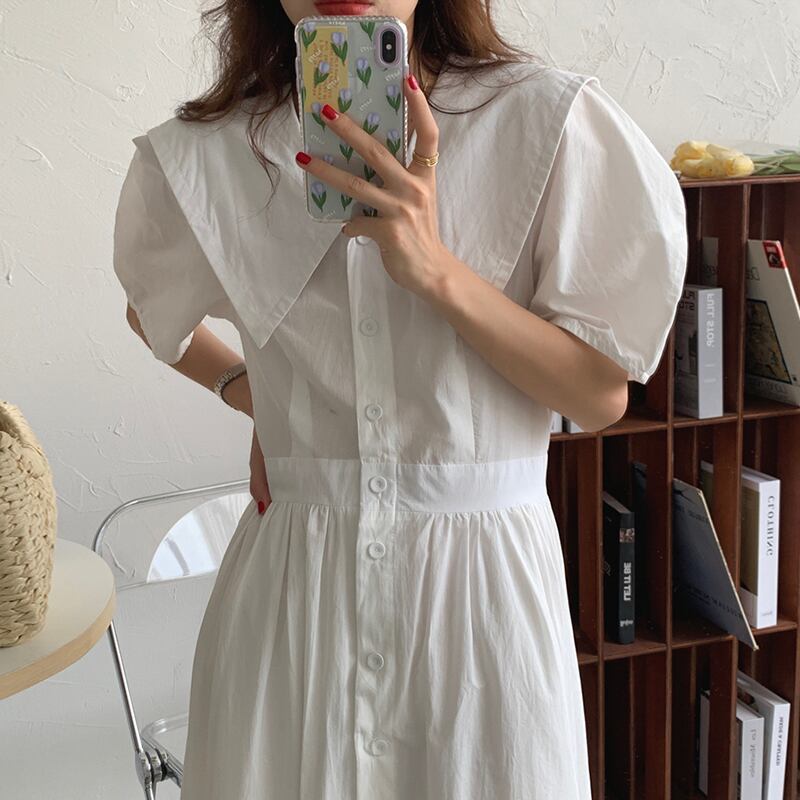サマーネイビーハイウェストウェスト薄手スリーブドレス 夏物 パープル 6/8 mi4676082156119