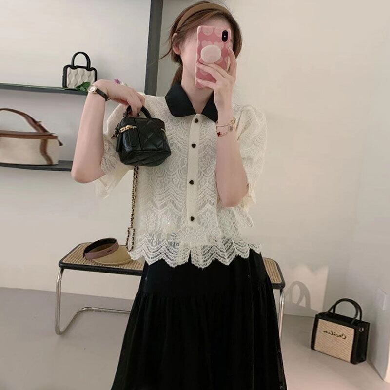 サマーレースシャツ ハイウェストウェストスカート ロング エレガント 夏物 6/8 mi4667555754773