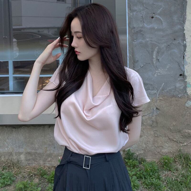 サマーVネックルーズカジュアルソリッド カラーノースリーブシャツ トップス レディース 夏物 ソリッドカラー 6/8 mi4660760678987