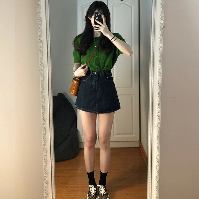 サマーラウンドネックメタルセーター ハイウェストウェストAラインスカート パンツ レディース エレガント 夏物 Oネック 6/8 mi4625116540554