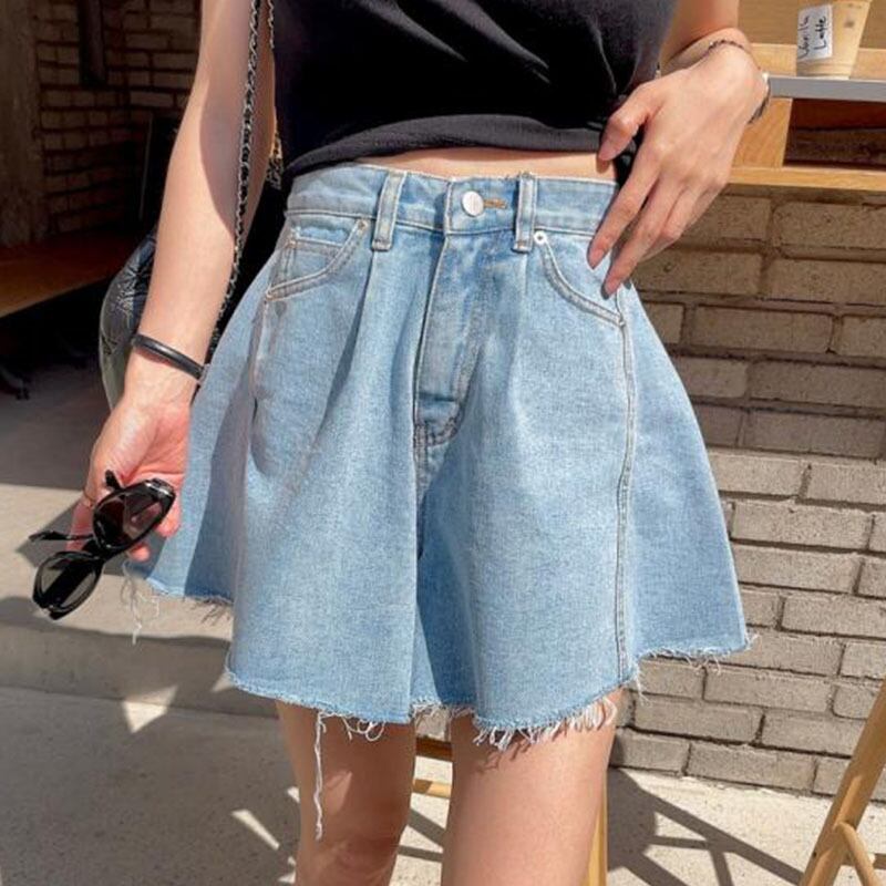サマースタンダードハイウェストウェストボタンダブルポケットルーズワイドレッグショーツ レディース レトロ 夏物 ブルマー ワイドパンツ 6/8 mi4687397523585