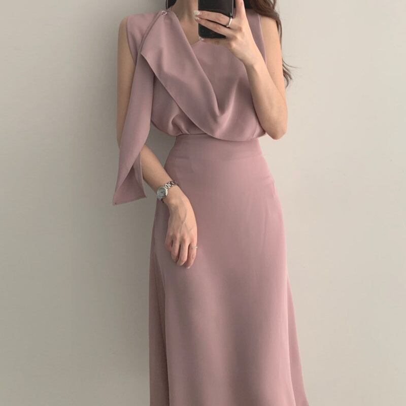 サマーノースリーブシャツ ハイウェストウェストスカート 夏物 6/8 mi4685914327069