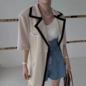 サマースタンダードカラープリント柄ボタンショートジャケット レディース レトロ 夏物 6/8 mi4628726968394