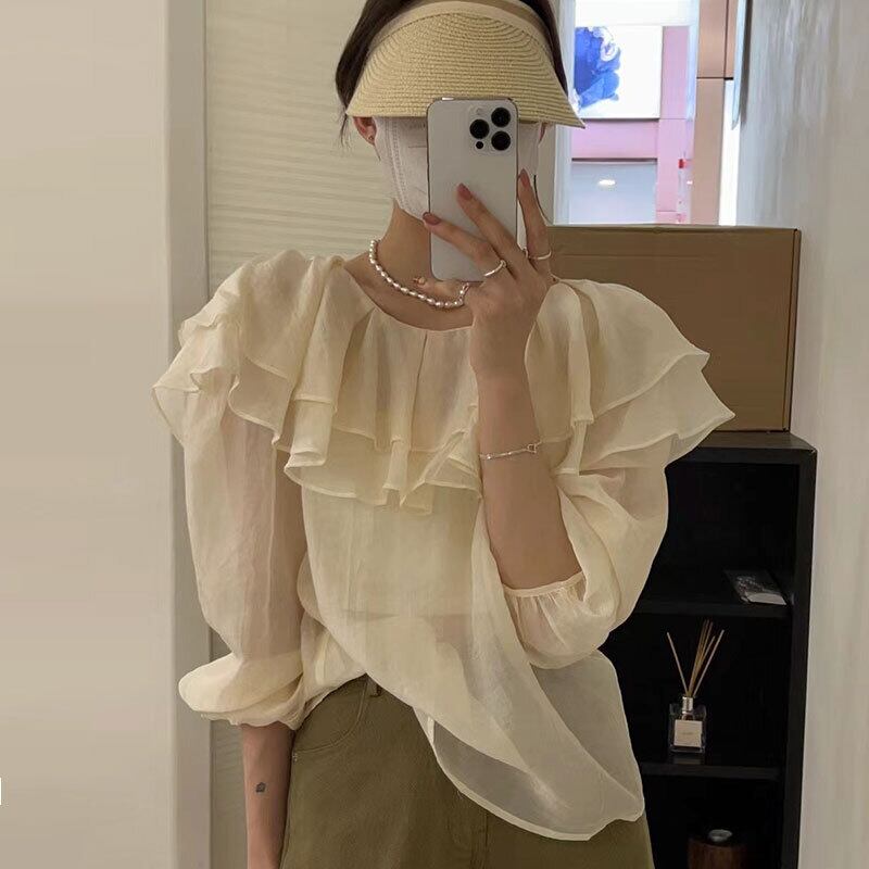 サマーラウンドネックシャツ レディース ロング 夏物 Oネック 6/8 mi466306110078