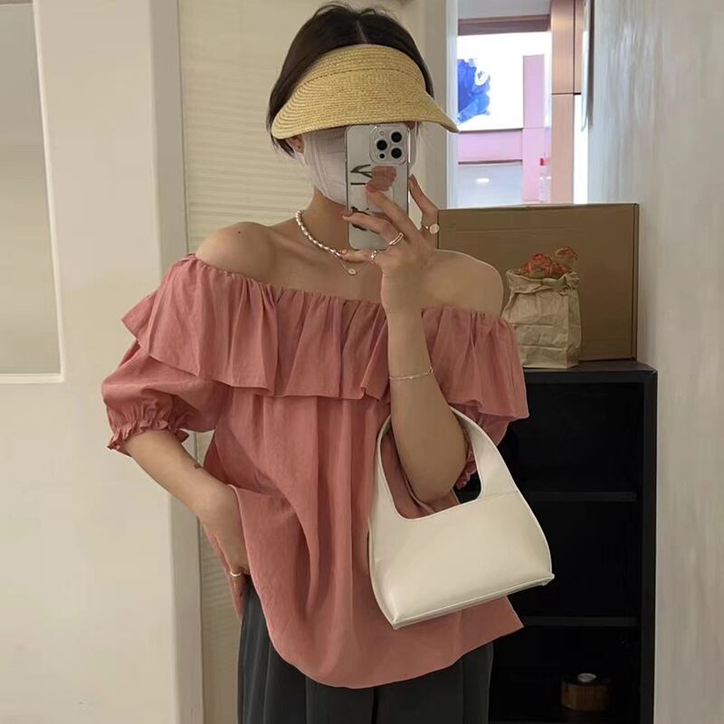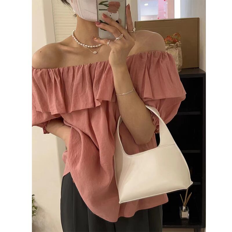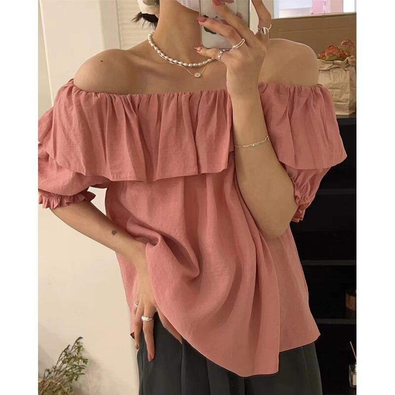 カラールーズスリーブシャツ レディース 大人ガーリー スウィート キュート カジュアル エレガント ステッチ 6/8 mi4638370715264