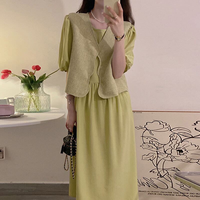 サマーVネックラウンドネックスリーブドレス 夏物 Oネック 6/8 mi4643036659491