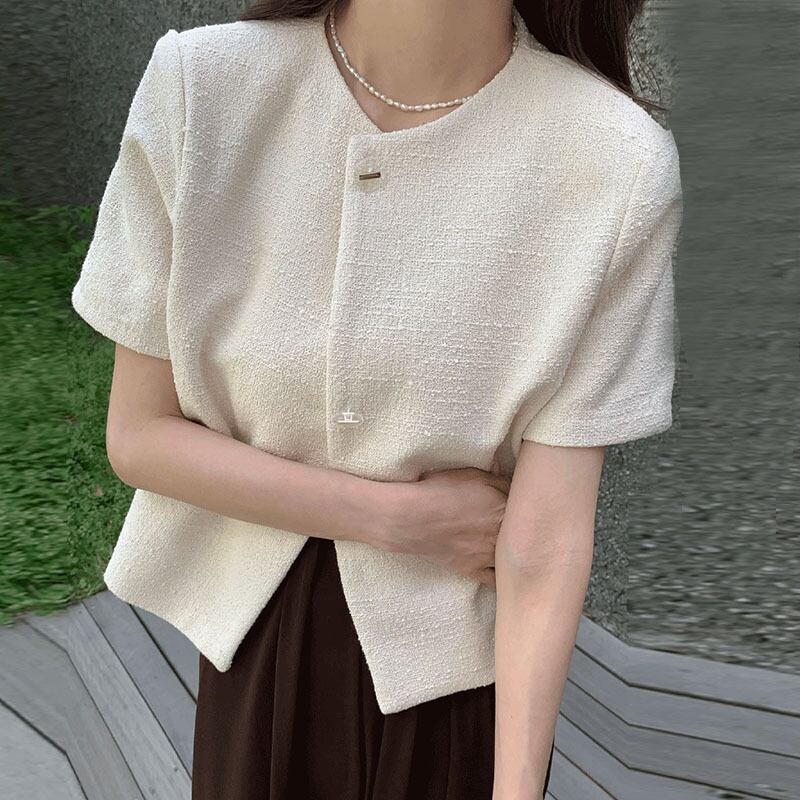 サマーラウンドネックシングルルーズツィードジャケット レディース 夏物 Oネック 6/8 mi4663044537759