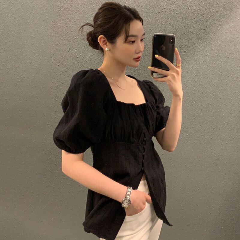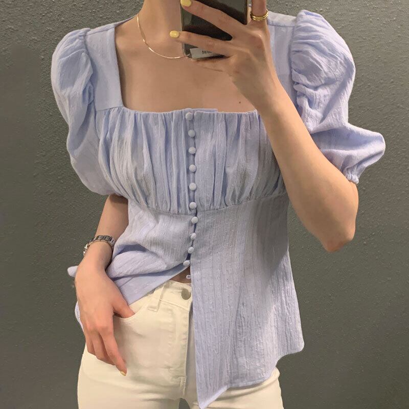カラープリーツルーズスリーブシャツ トップス レディース エレガント スクウェア 6/8 mi4698192636313