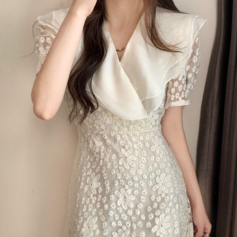 サマースタンダードレース刺繍スリーブドレス レトロ 夏物 6/8 mi4622588245065