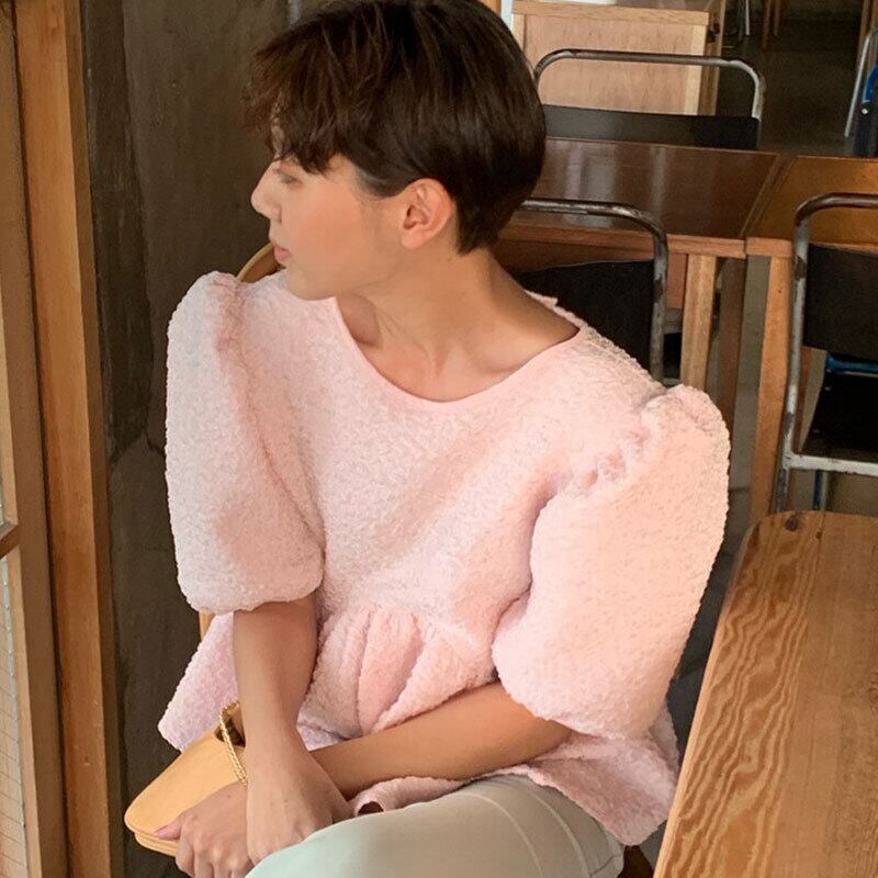 サマーラウンドネックバックスリーブシャツ レディース ピンク レッド 夏物 Oネック 6/8 mi4672799179077