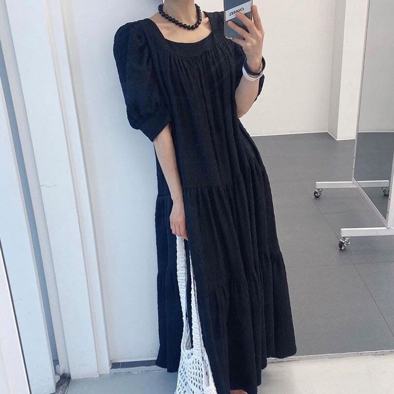 サマースタンダードカラールーズドレス レッド レトロ 夏物 スクウェア 6/8 mi4686277838087