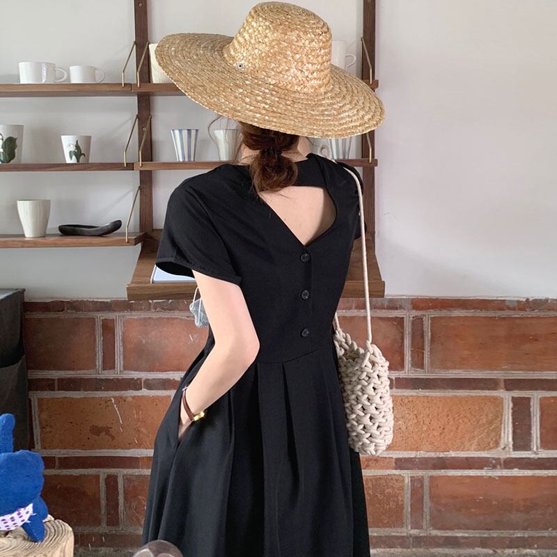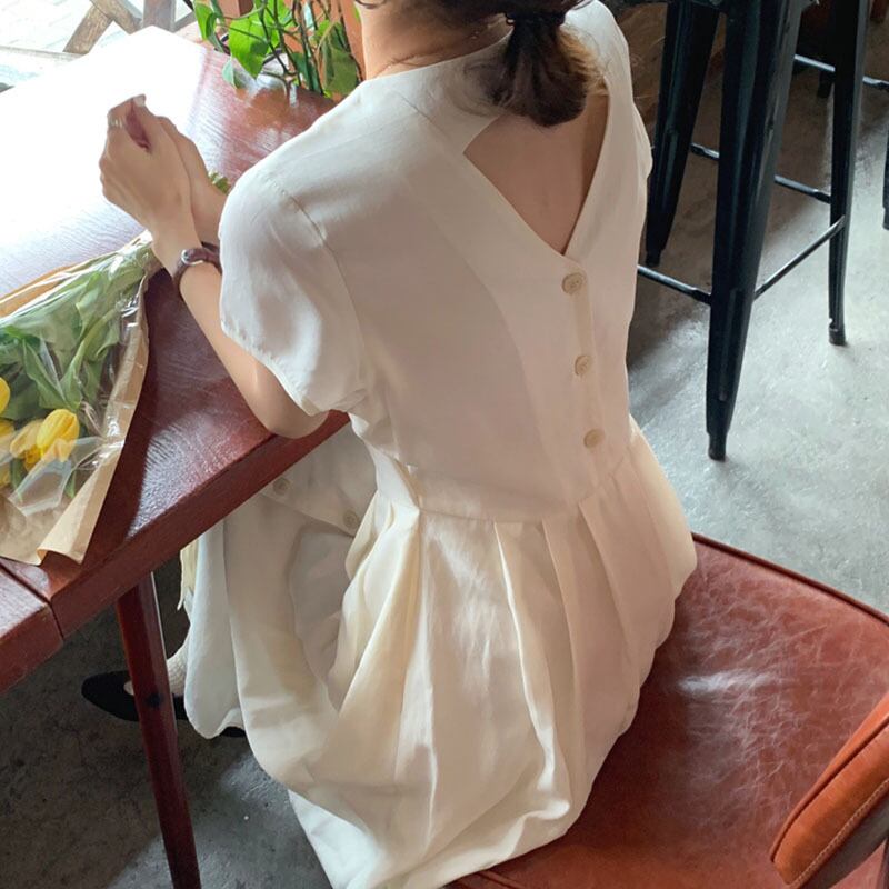 スタンダードVネックプリーツウェストバックドレス レトロ 6/8 mi4610156521207